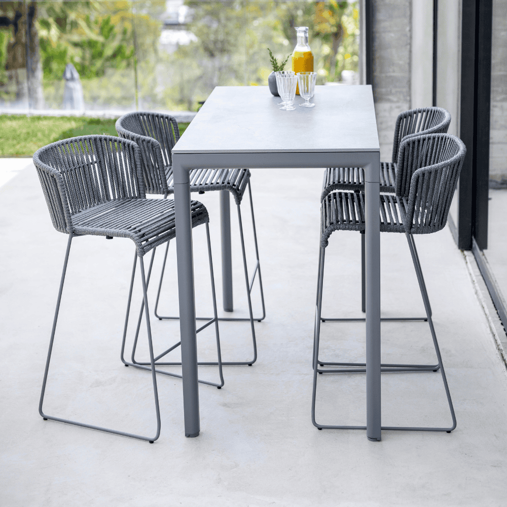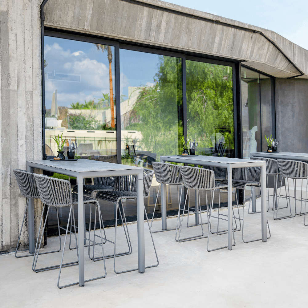 Moments Outdoor Bar Chair is crafted by the Danish design pair Foersom & Hiort-Lorenzen MDD, the Moments bar chair epitomizes the quintessence of Scandinavian minimalism, seamlessly fused with elevated comfort. Showcasing a design that radiates gracefulness and transparency, this bar chair captivates from all perspectives. Constructed using weather-resistant Soft Rope, the Moments collection embodies a harmonious blend of aesthetics and durability.