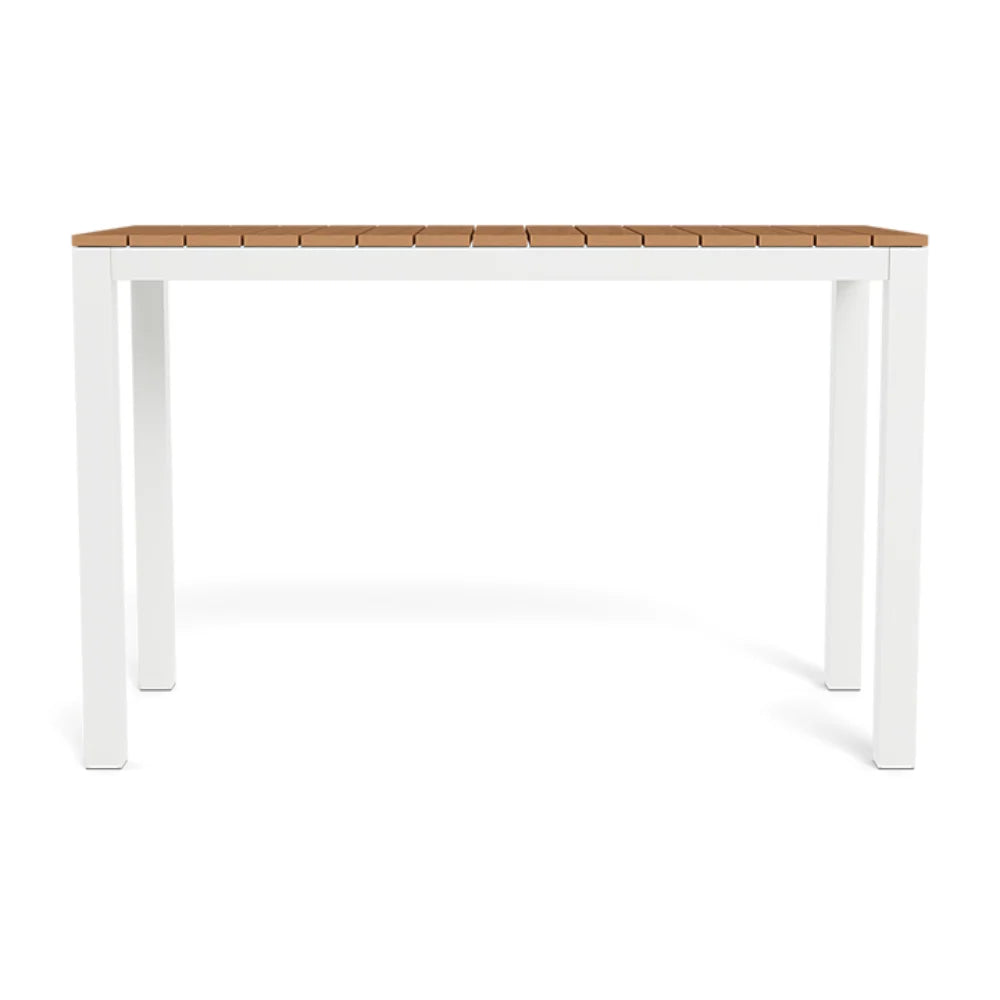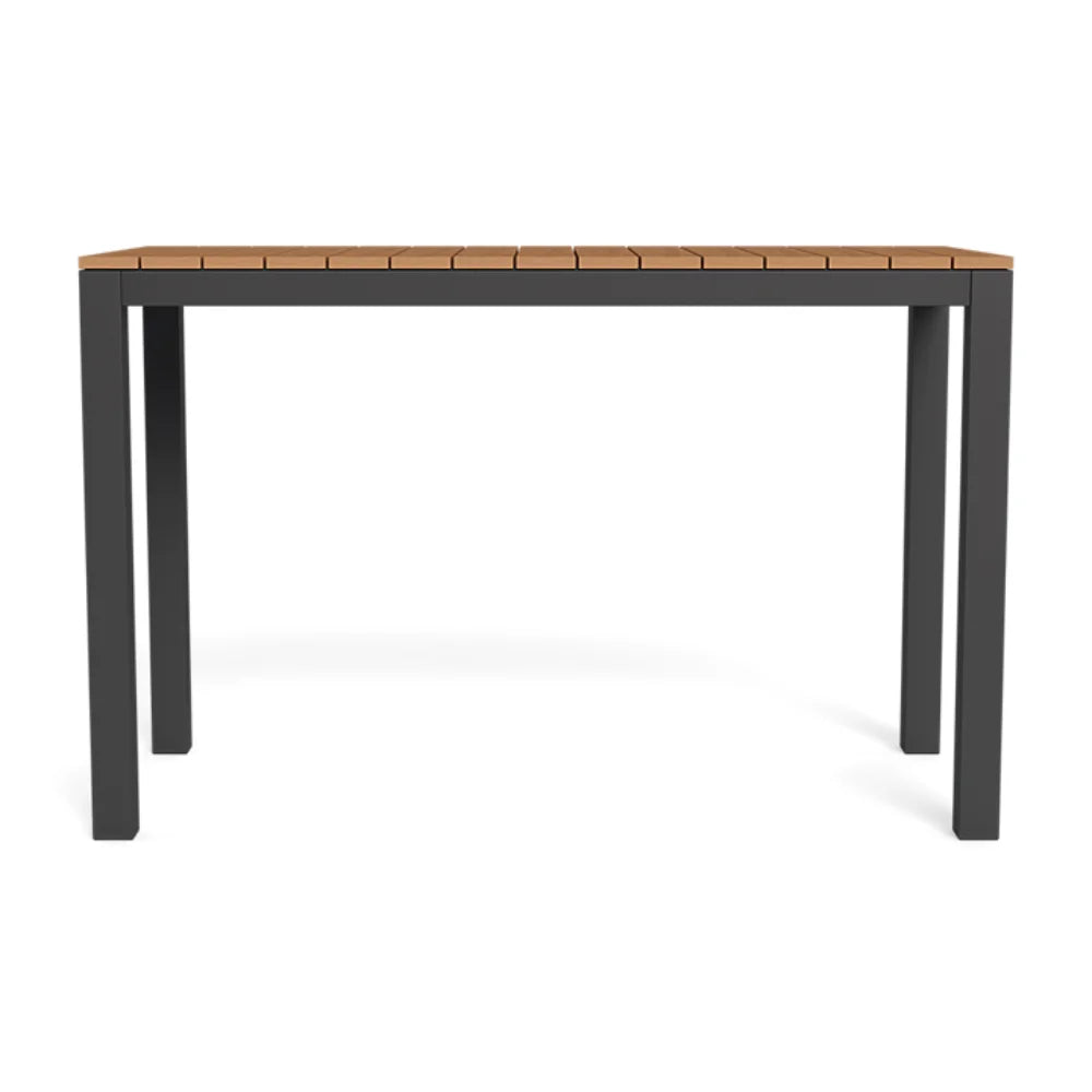 Our Pacific collection features clean lines with a California rustic essence. The Pacific Rectangle Bar Table is the perfect gathering place — handcrafted in solid Grade A Indonesian teak available in Charcoal or Natural with a simple slatted top for maximum functionality. The base is available in Natural teak or White or Asteroid Aluminum. Our larger bar table, this modern bar height table effortlessly fits in any outdoor space, offering an ideal surface for entertaining.