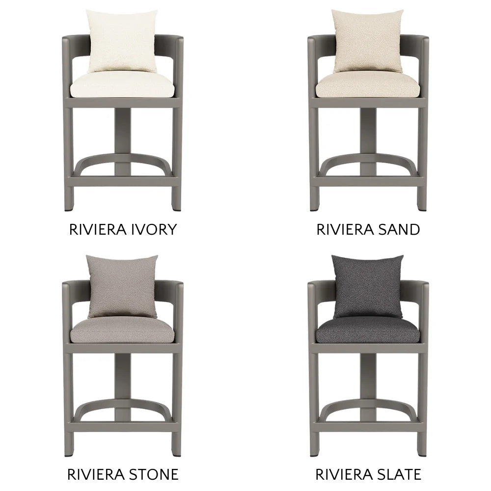Our Victoria collection balances sculptural curves and right angles for true simplicity of proportion. The Victoria Counter Stool is the perfect everyday seat for outdoor counter spaces — enjoy plush all–weather seat and back cushions in a range of neutral tones supported by a slatted suspension with a striking rounded frame in powder coated extruded aluminum, available in Asteroid or Taupe. Tailored and sophisticated, this contemporary counter–height stool brings harmony to a variety of outdoor spaces.