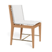 This dining chair coordinates with other items in the Byron Outdoor Collection for cohesive outdoor layouts. It is suitable for standard outdoor dining tables and adaptable to various outdoor configurations. The chair is available in natural teak and Gray Teak. Gray Teak is treated with a finishing solution that accelerates the natural aging process of teak to achieve a silver tone. Variations in texture, marks, and cracks will naturally develop over time and are expected characteristics rather than defects. The finish will continue to evolve with outdoor exposure.