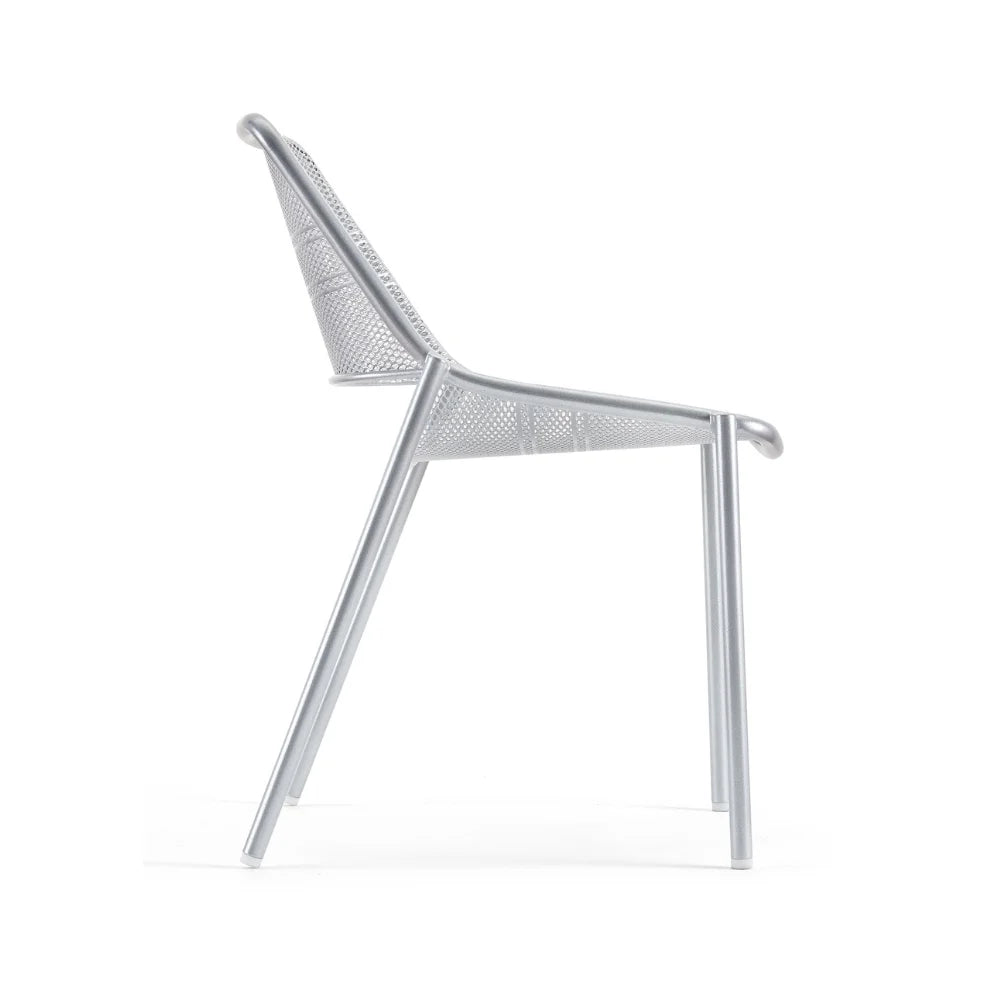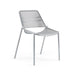 The Como Steel Outdoor Armless Stackable Dining Chair combines contemporary design with practical functionality. Its base, crafted from lightweight yet robust aluminum, offers structural integrity while being weather-resistant, ideal for outdoor settings. The chair’s overall texture is smooth to the touch, with a subtle matte finish that lends an understated sophistication to its design.