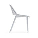 Shaped with clean, minimalist lines, the chair has a slightly curved backrest and seat, ergonomically designed to provide comfort without the need for cushioning. Its armless structure creates a streamlined silhouette, allowing for easy movement and flexibility in various seating arrangements.