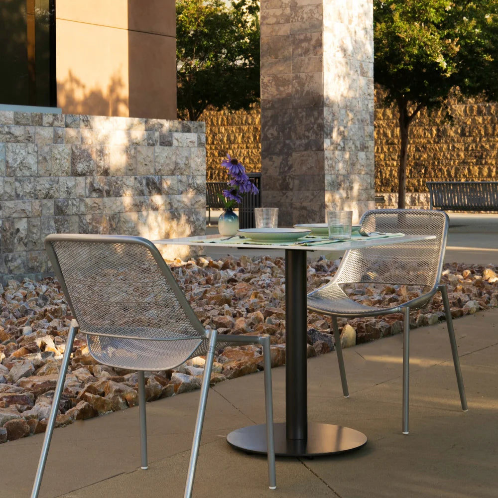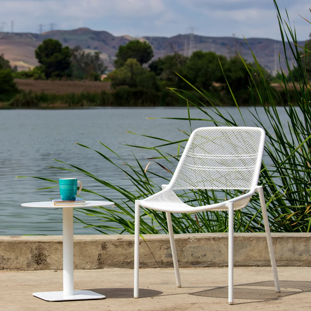 Ideal for outdoor dining, the Como Steel Outdoor Armless Stackable Dining Chair’s combination of form, function, and aesthetics makes it a standout addition to any modern patio or garden setup.