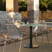 In terms of size, the chair is compact yet sturdy, with proportions perfect for both intimate and larger outdoor dining spaces. The chair stands at a balanced height, accommodating most standard dining tables, while the seat is wide enough to offer comfort during extended use.
