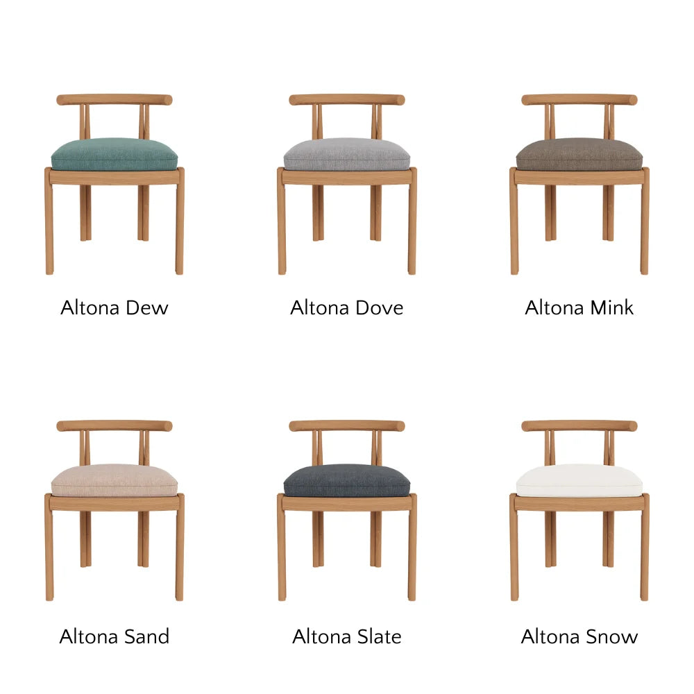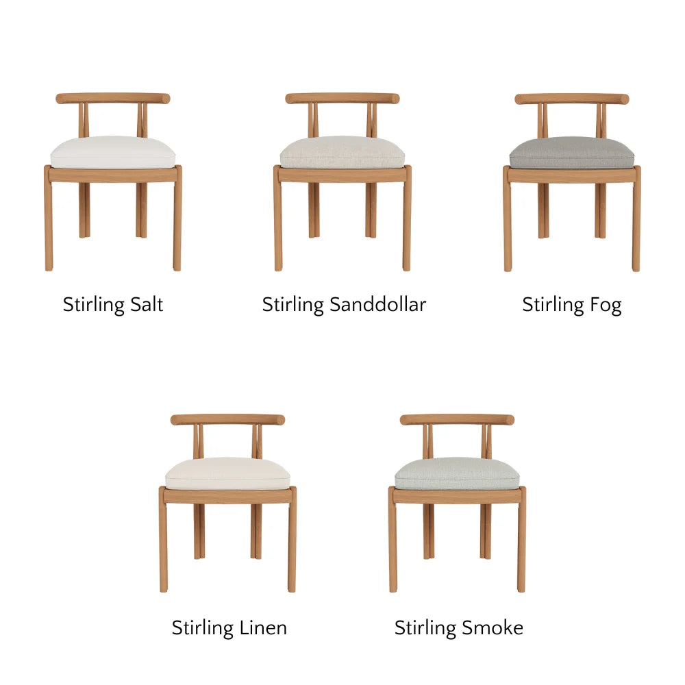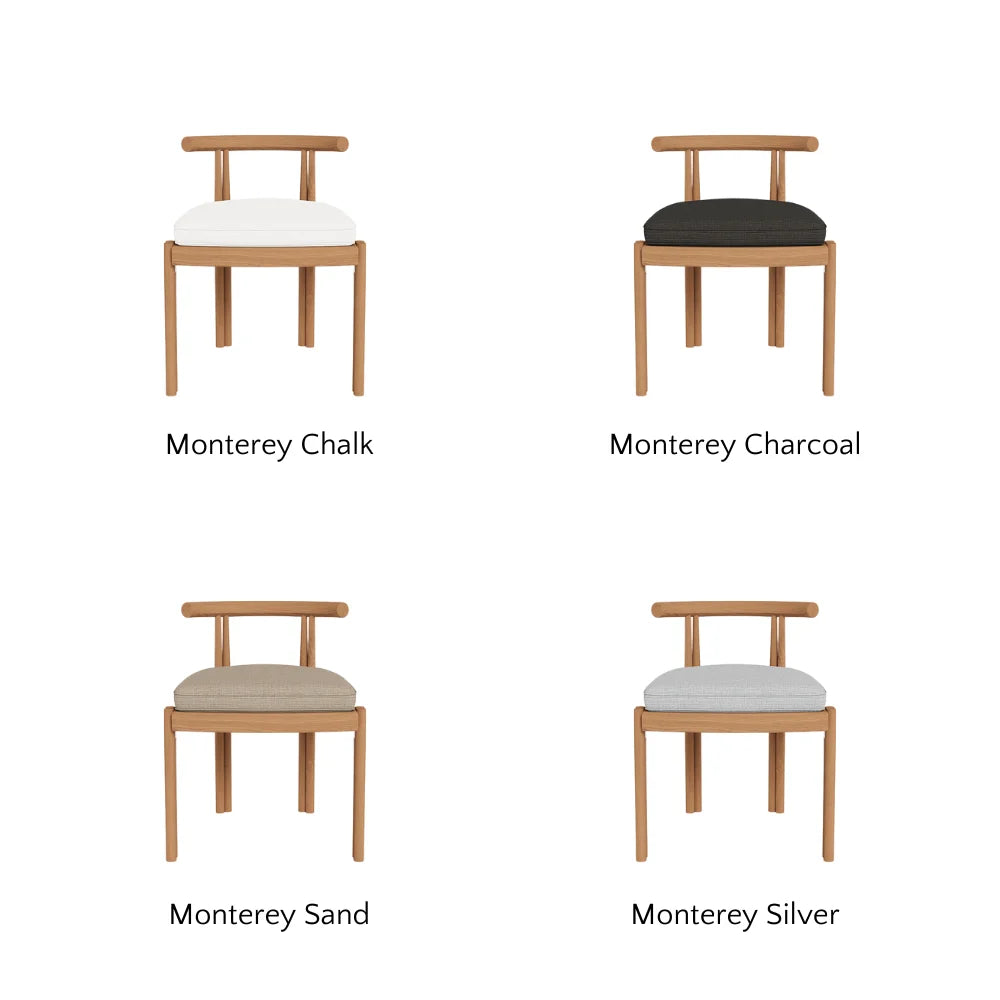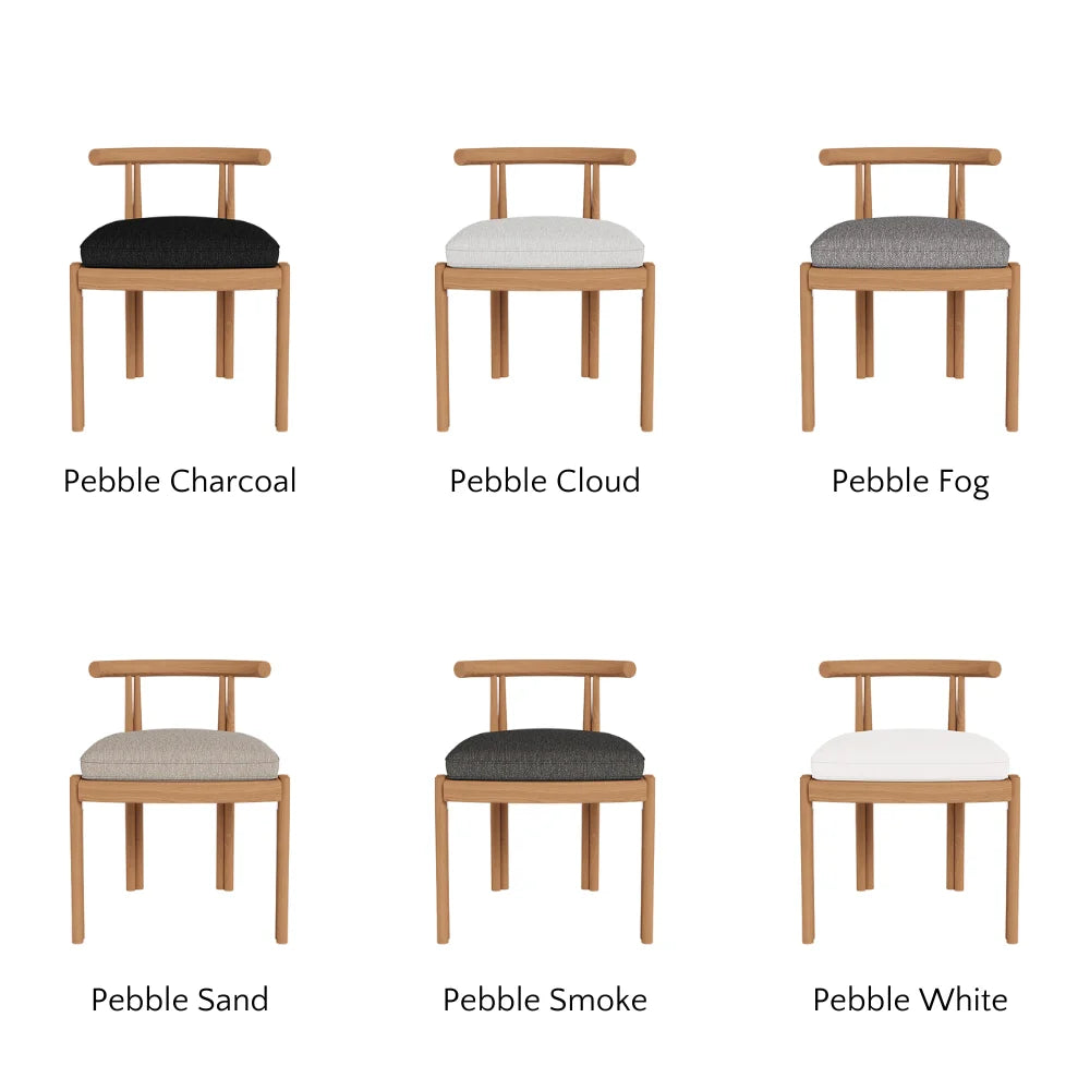 Influenced by modern Australian architecture and landscapes, our refined Cove collection features special details like double cylindrical legs and curved edges that create soft sculptural silhouettes. The Cove Dining Chair is contemporary comfort — featuring a refined solid teak frame in Natural with an architectural double leg detail and striking curved back.