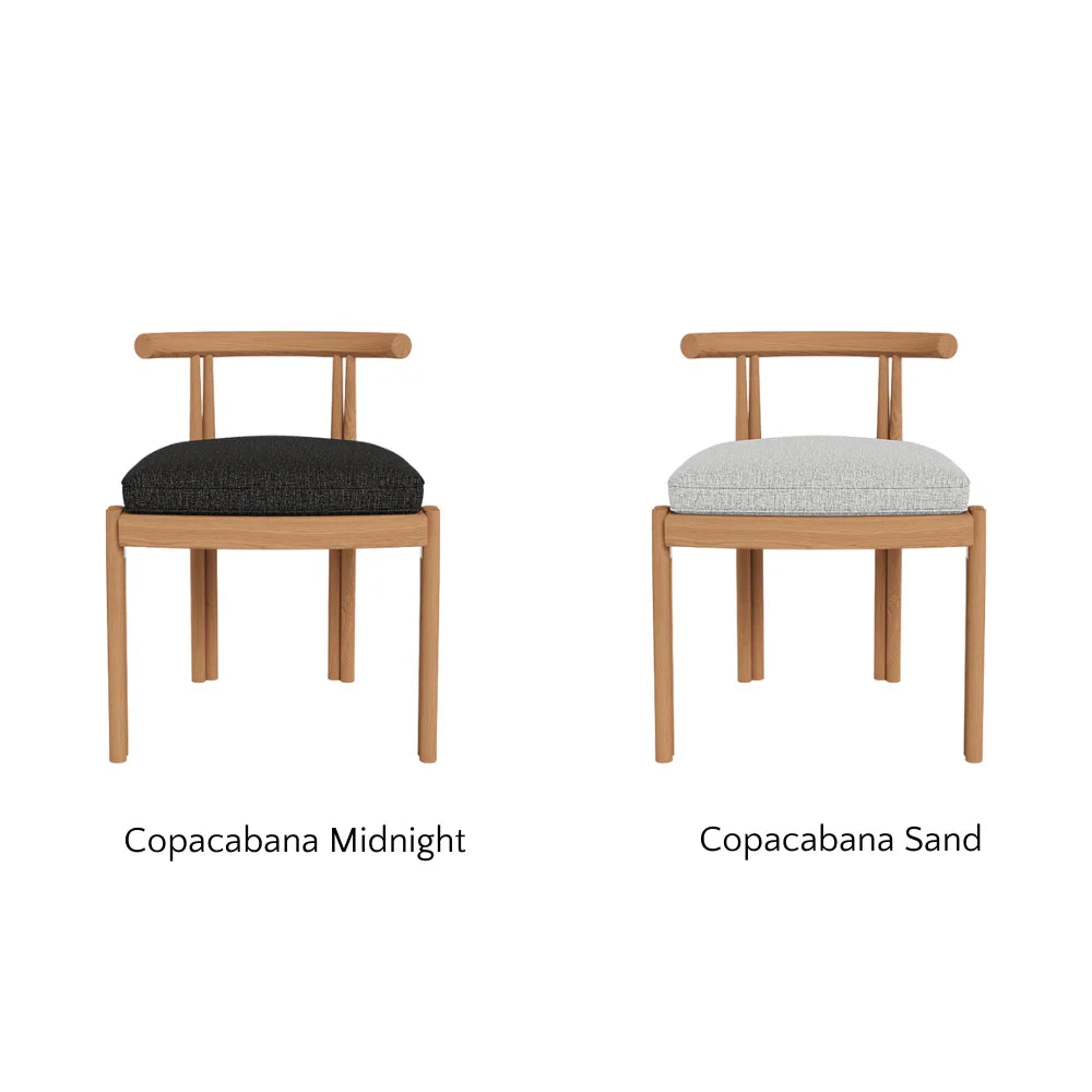 Enjoy a plush all–weather cushion in Copacabana Natural that invite sink–in comfort. Tracery and light with a footprint to match, this comfort–driven outdoor dining chair is a versatile design element for any space and effortlessly coordinates with the matching side chair. Pair it with any table to complete the outdoor dining set.