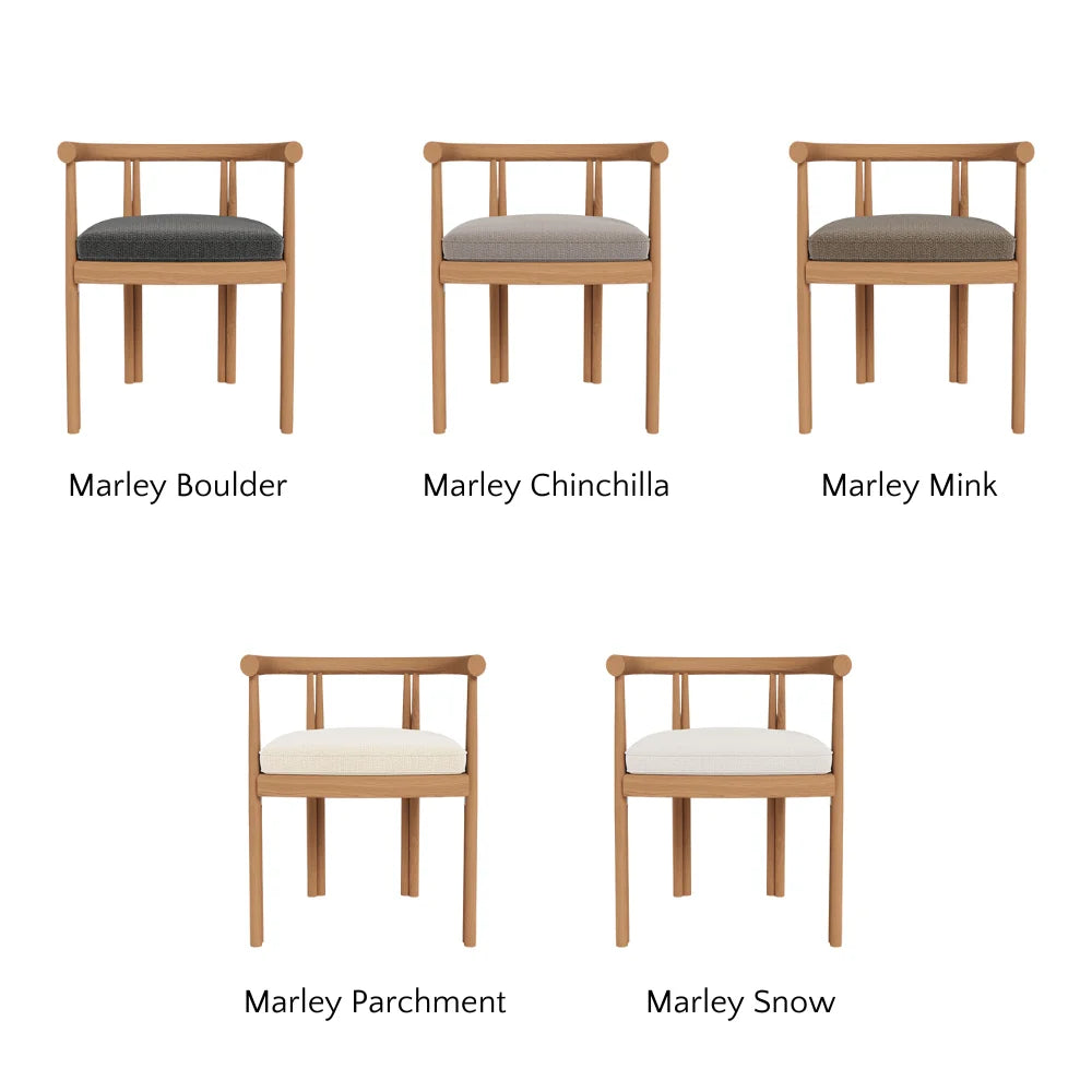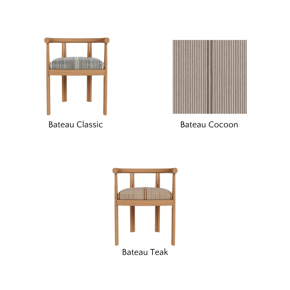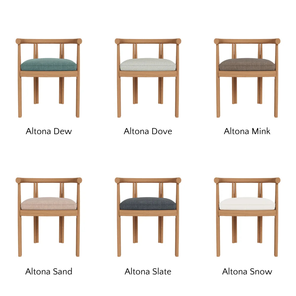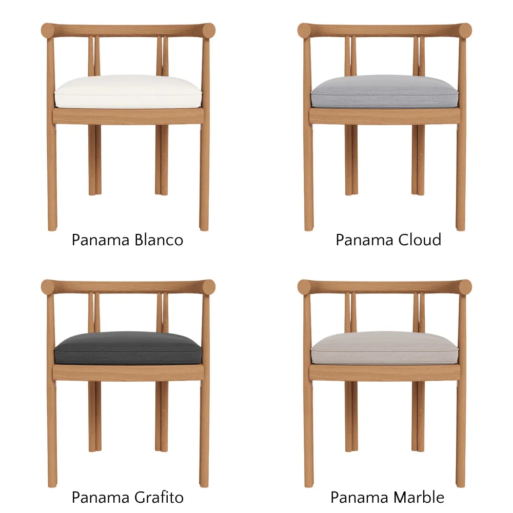 Influenced by modern Australian architecture and landscapes, our refined Cove collection features special details like double cylindrical legs and curved edges that create soft sculptural silhouettes. The Cove Dining Chair is contemporary comfort — featuring a refined solid teak frame in Natural with an architectural double leg detail and striking curved back. Enjoy a plush all–weather cushion in Copacabana Natural that invite sink–in comfort. Tracery and light with a footprint to match, this comfort–driven outdoor dining chair is a versatile design element for any space and effortlessly coordinates with the matching side chair. Pair it with any table to complete the outdoor dining set.