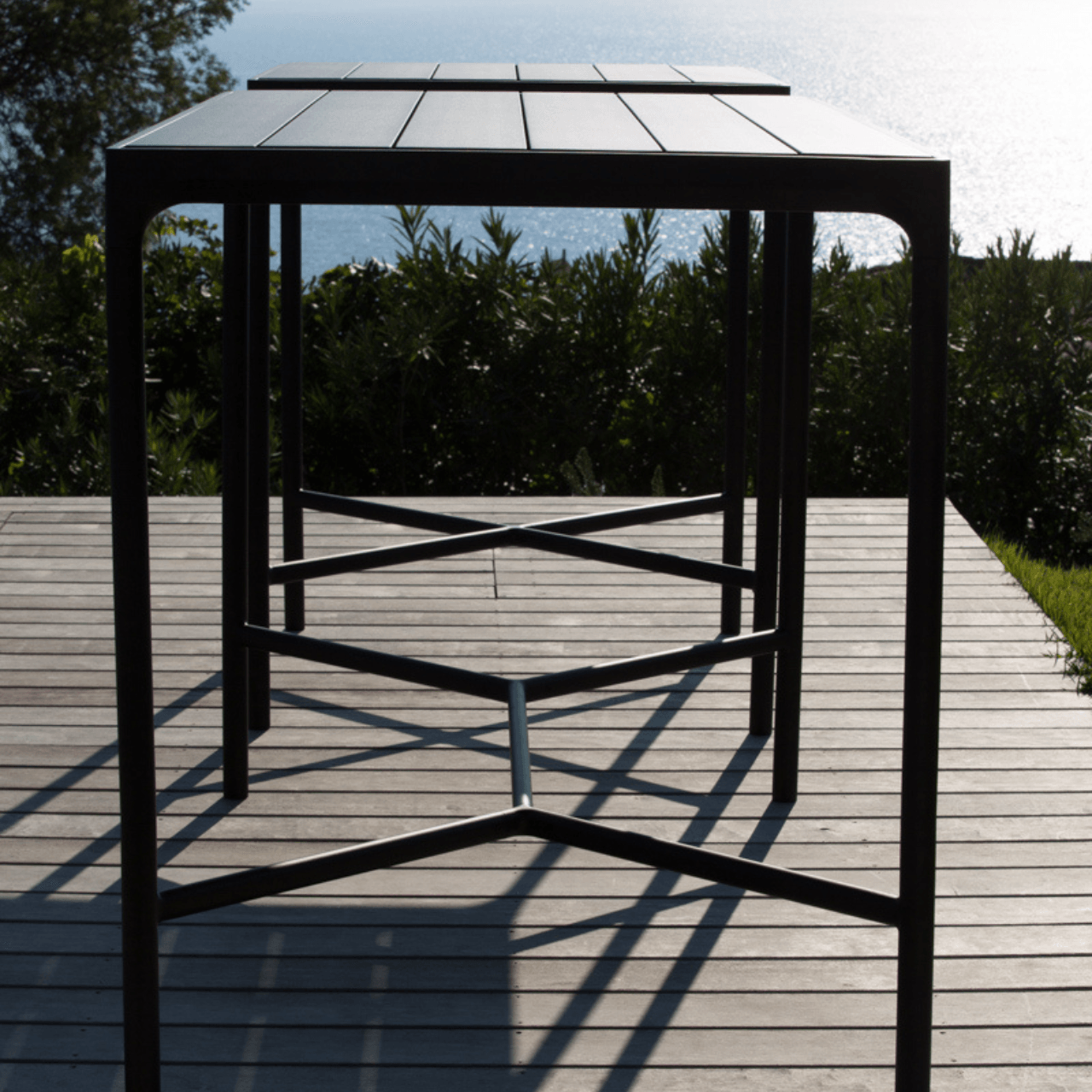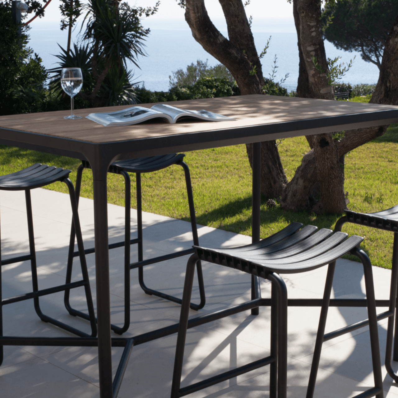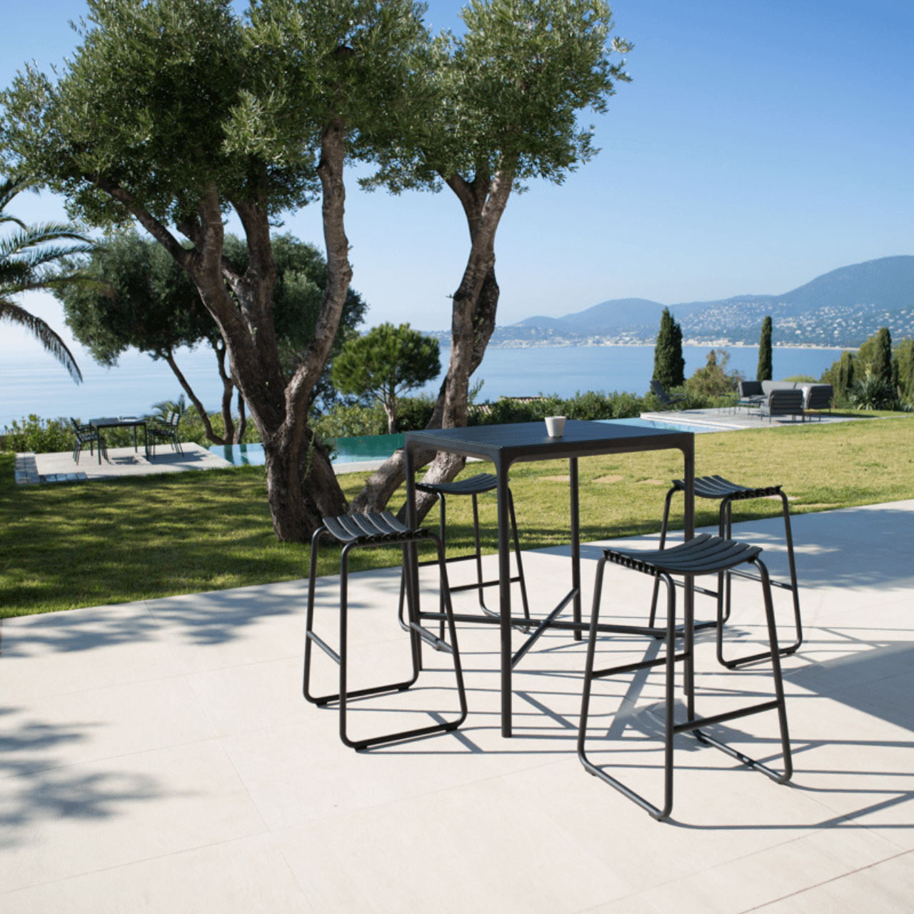 The FOUR Outdoor Bar Table is the perfect addition to your outdoor space. Made with a black aluminum powder coating and an extension to the leg construction, this table is durable and stylish. Pair with bar stools from the CLIPS collection for a cohesive look.
