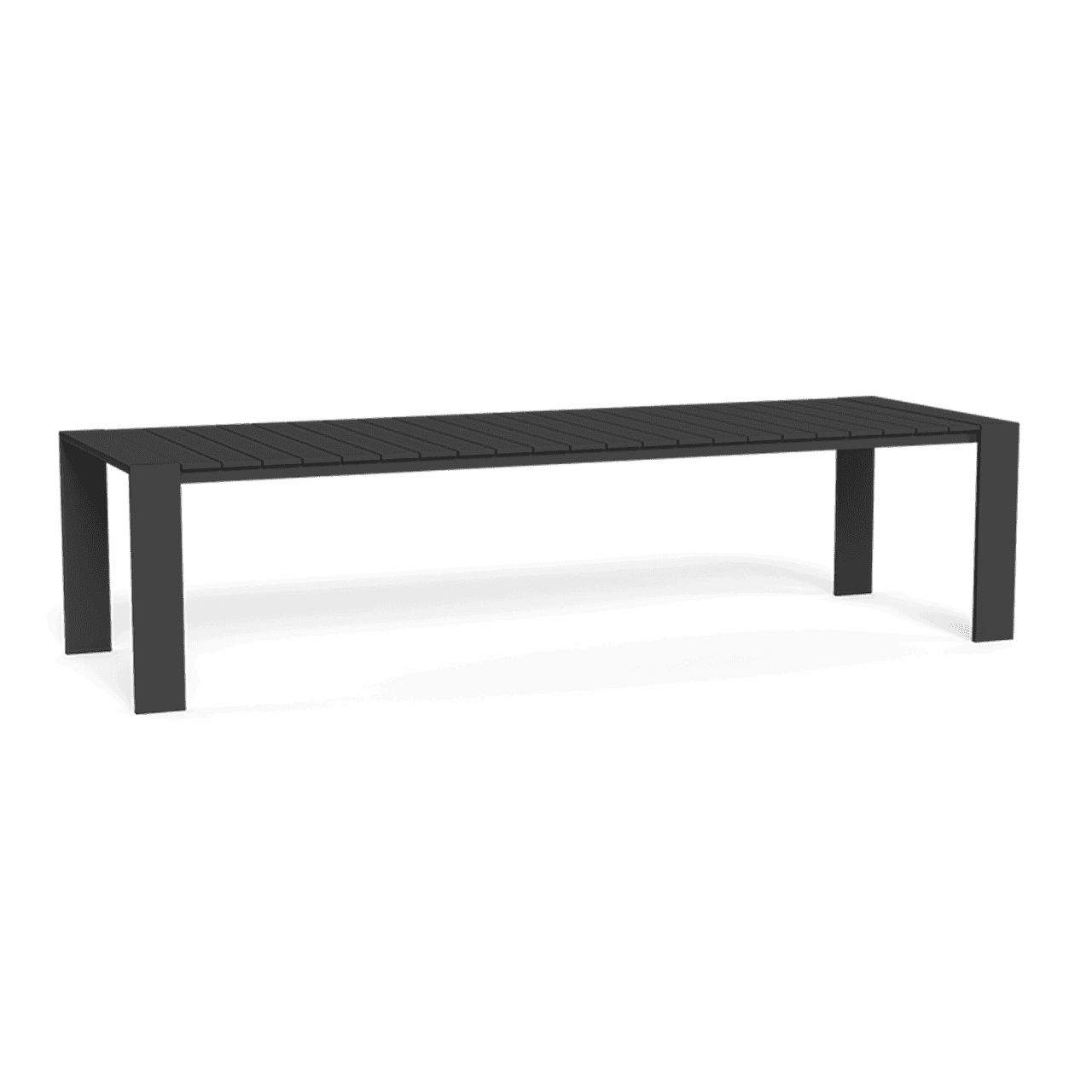 Crafted with sturdy wide legs and our largest rectangular surface in slatted extruded aluminum, available in either Asteroid or White, our outdoor dining table sets the perfect stage for unforgettable outdoor gatherings. Tailored to comfortably accommodate up to twelve guests, it seamlessly merges indoor. . . Show More