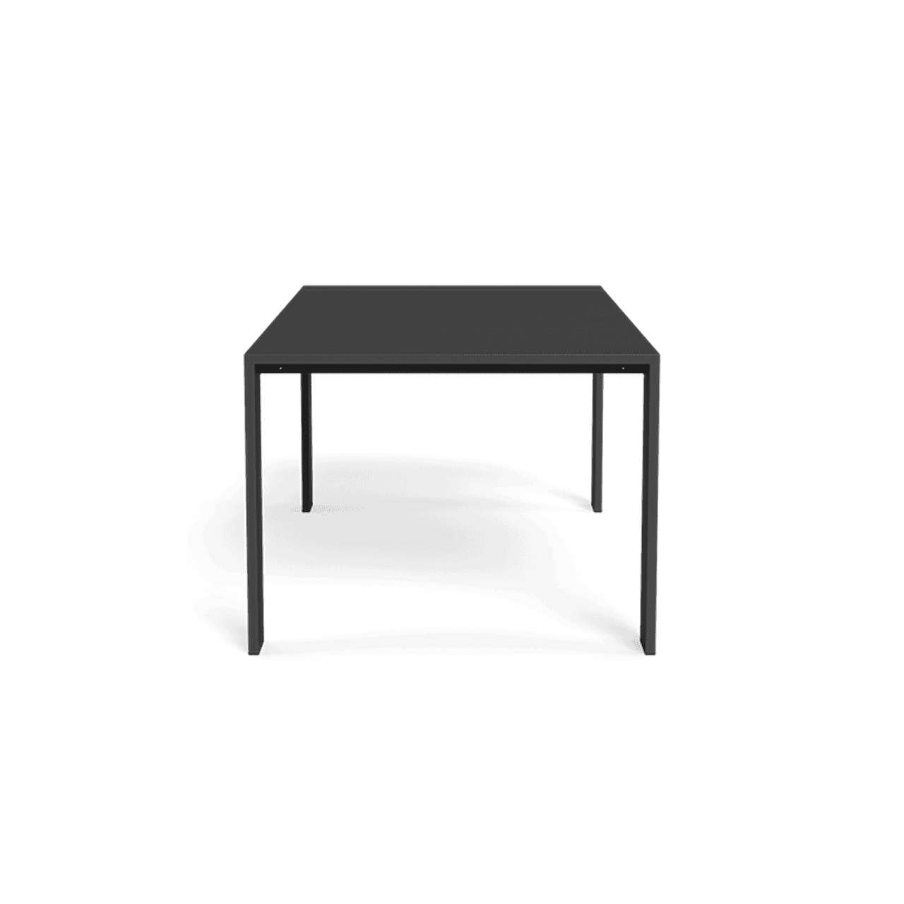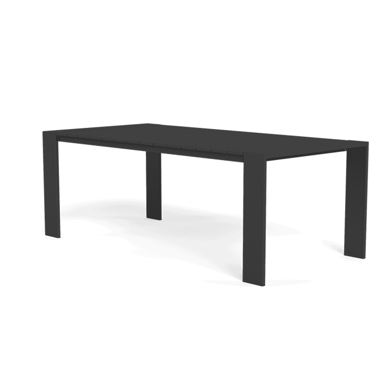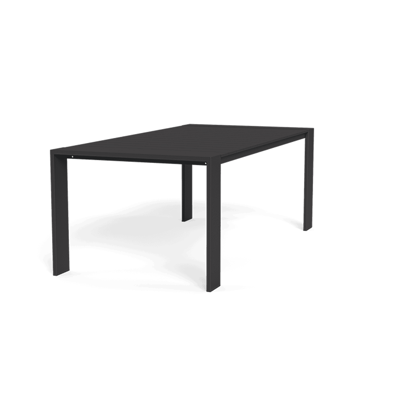 Crafted with broad legs and a petite rectangular surface in slatted extruded aluminum, available in Asteroid or White, our dining table embodies streamlined elegance. Designed to comfortably accommodate up to eight guests, it seamlessly merges indoor aesthetics with outdoor performance, making it an ideal choice for various spaces, particularly smaller ones, offering a harmonious fusion of style and functionality.