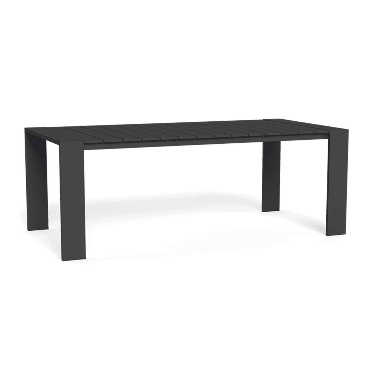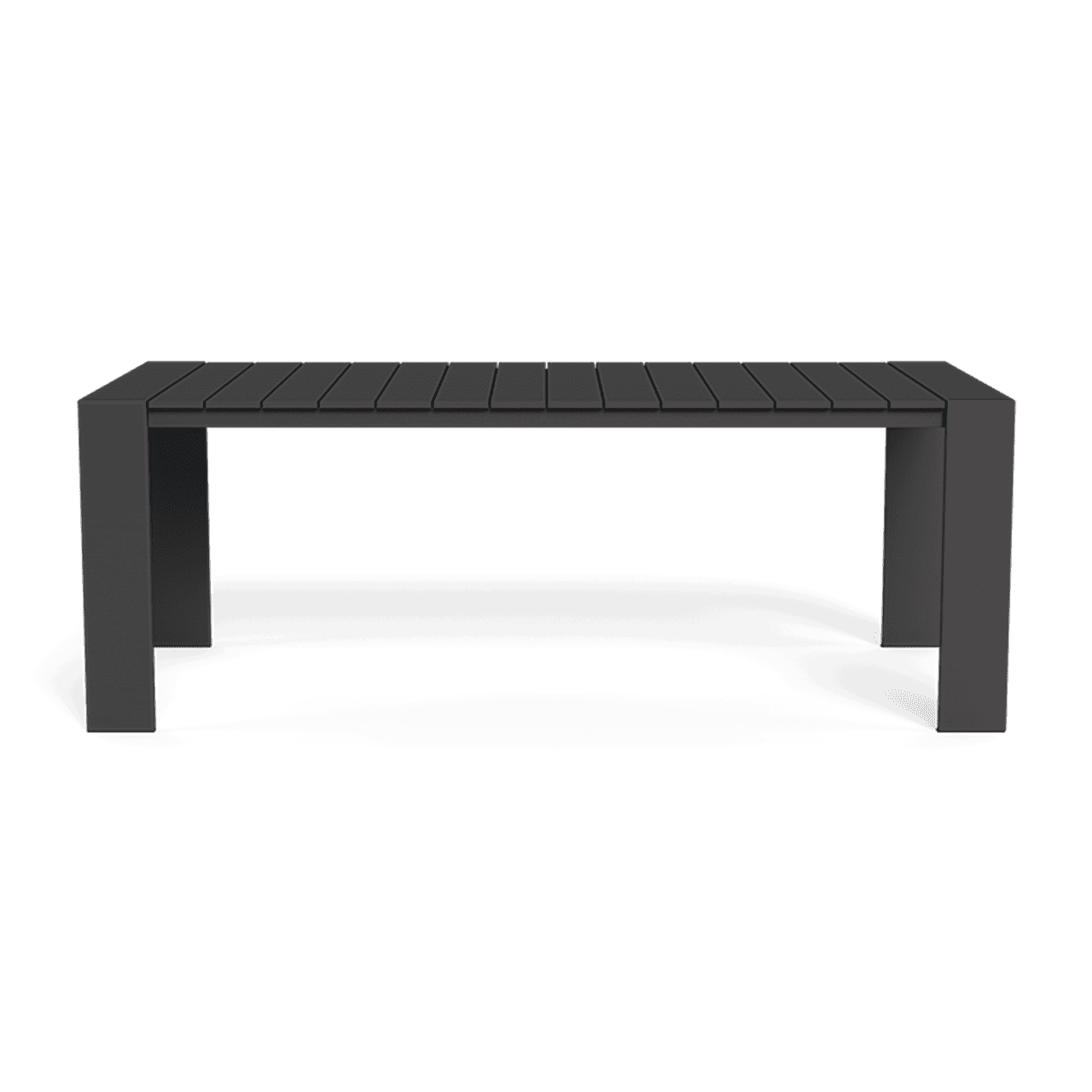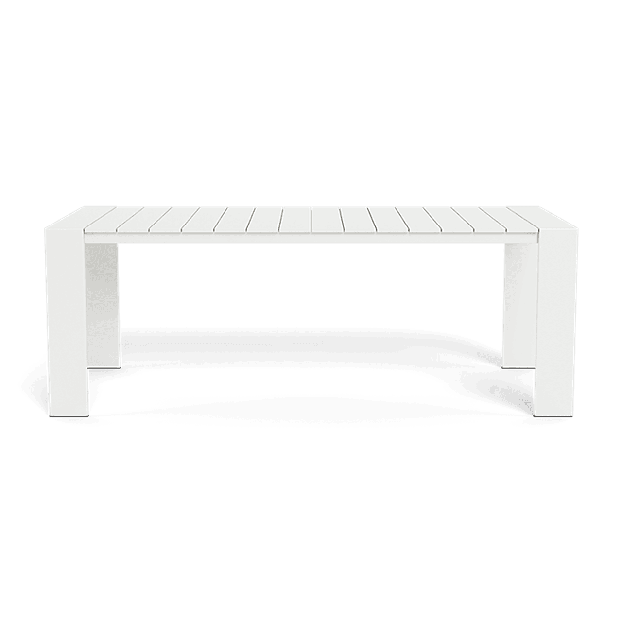 Crafted with broad legs and a petite rectangular surface in slatted extruded aluminum, available in Asteroid or White, our dining table embodies streamlined elegance. Designed to comfortably accommodate up to eight guests, it seamlessly merges indoor aesthetics with outdoor performance, making it an ideal. . . Show More