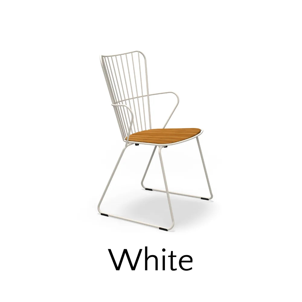 The SHOPBOXHILL PAON line consists of a Dining chair, Lounge chair, Rocking chair, a two seater Bench and a Bar chair. Made in powder coated steel with bamboo lamellas.