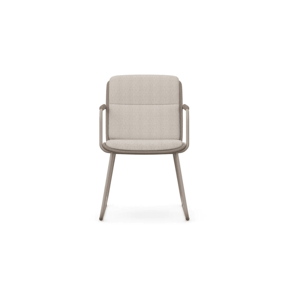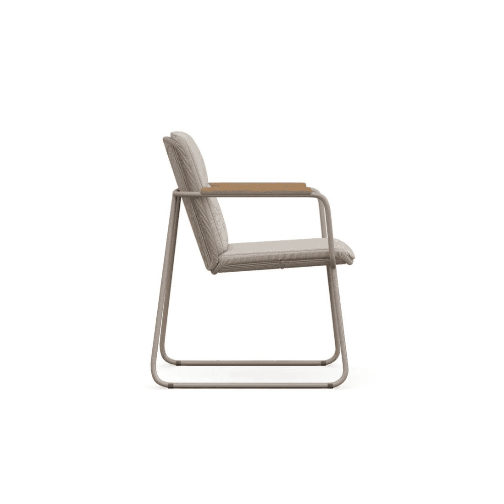 Warm colors and invitngly soft textures, the Paros Outdoor Stackable Dining Chair by Boxhill is a lovely harmony of mixed materials. The delicate frame, composed of anthracite stainless steel, is gracefully shaped and upholds its beauty against turbulent weather. Teak details are subtly warm to. . . Show More