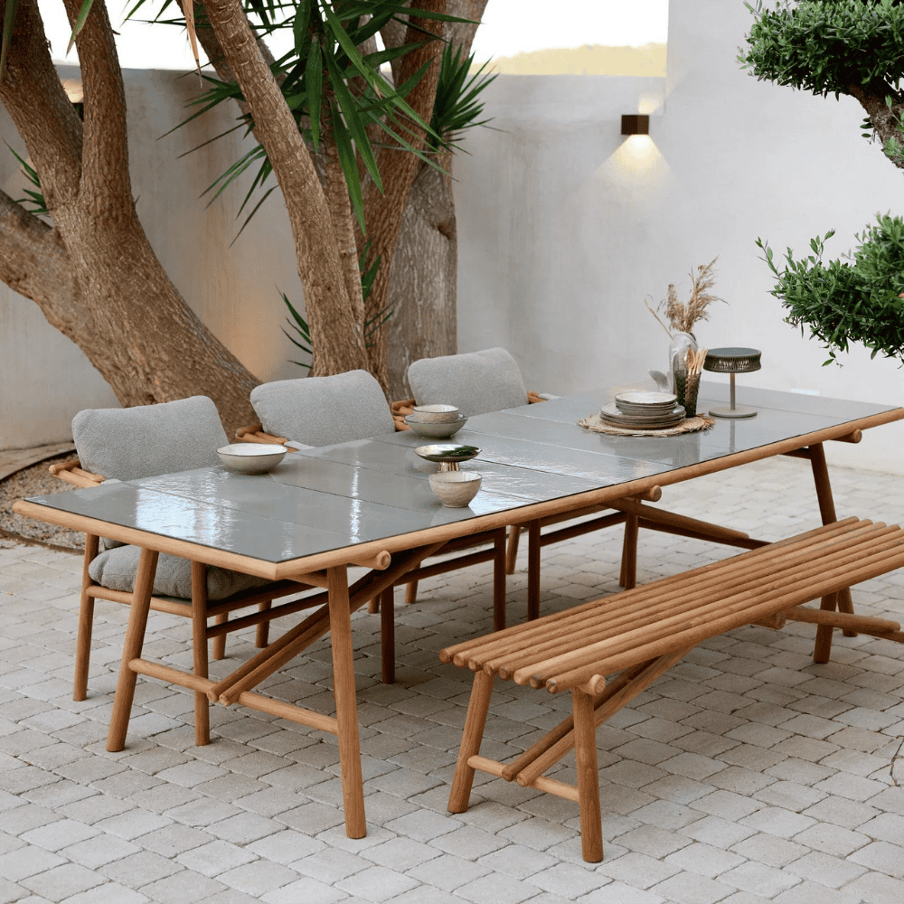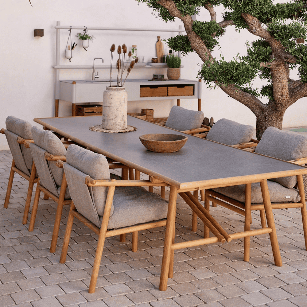 If you leave the sofa untreated, it will ultimately develop a lovely grey patina and require no maintenance. A appropriate teak oil can also be used to clean and lubricate the sofa. The sofa should be oiled at least twice a year, depending on the temperature it is exposed to. The SVLK certification system is used to approve and regulate the cultivation of cane-line teak. Keep in mind that the Amaze teak sofa needs two cushions.