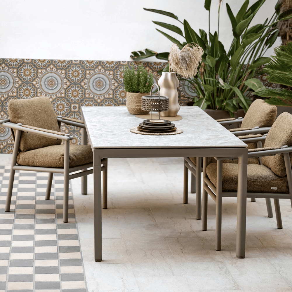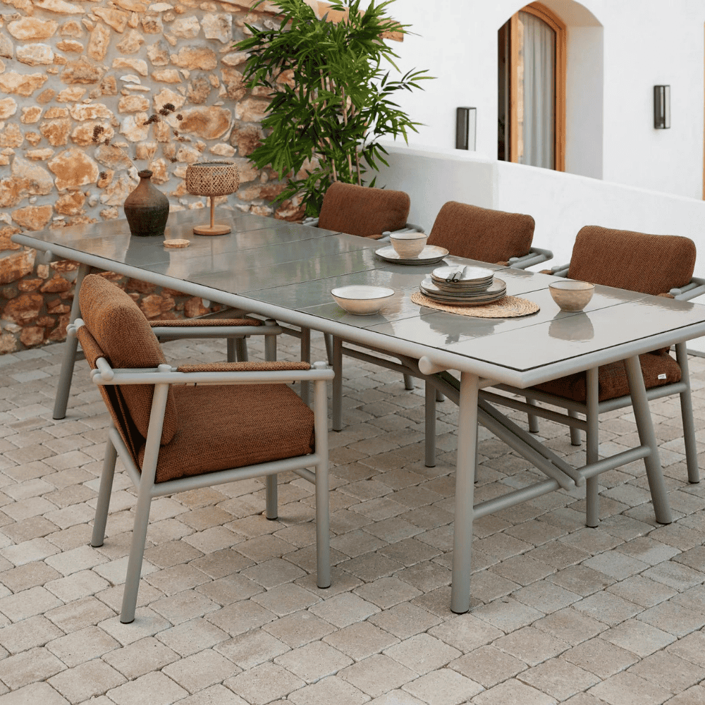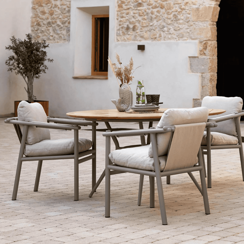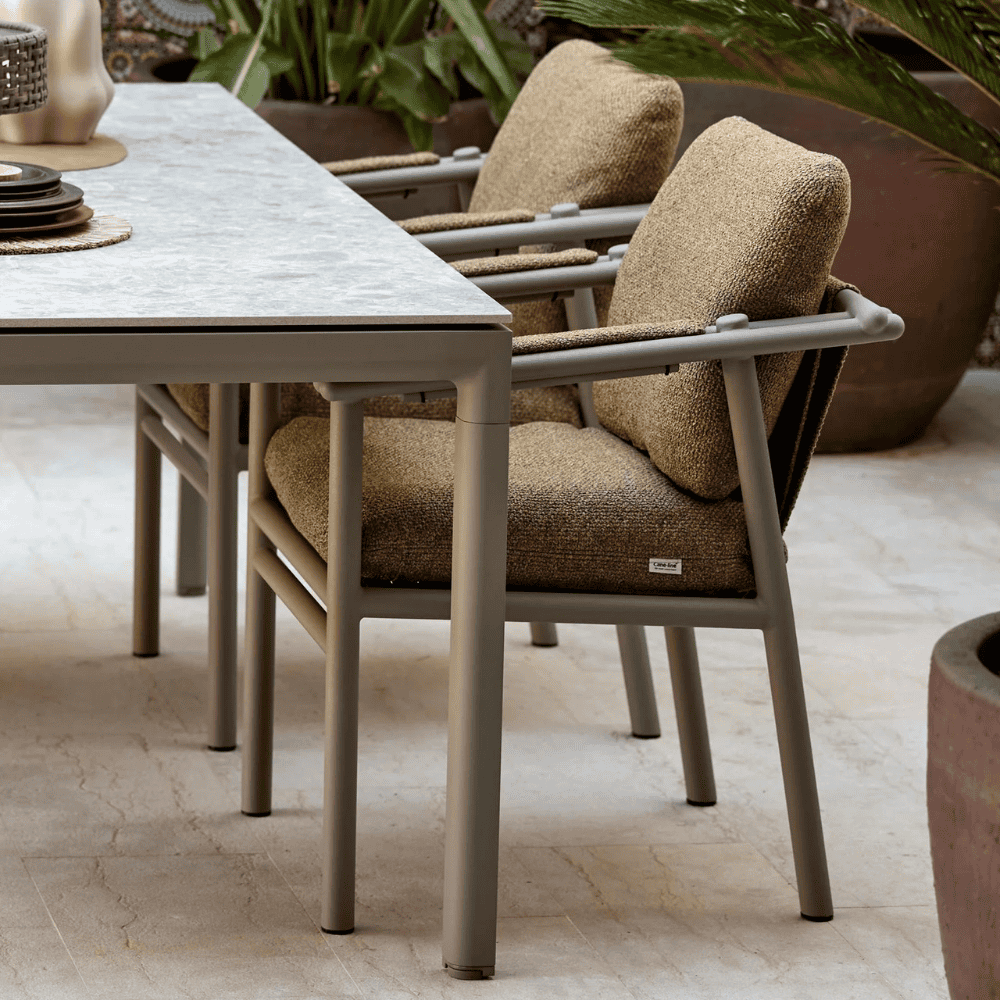Experience the perfect fusion of charm and contemporary design with the Sticks Outdoor Dining Armchair from the Sticks series, crafted to elevate your outdoor dining experience. Drawing inspiration from the natural beauty of sticks, this outdoor dining armchair seamlessly combines modern aesthetics with durability, ensuring optimal relaxation and dining comfort. The addition of cushions not only enhances comfort but also adds a touch of style to your outdoor space. Pair it with the Sticks Dining Table for a cohesive look, or mix and match as desired to suit your outdoor decor.