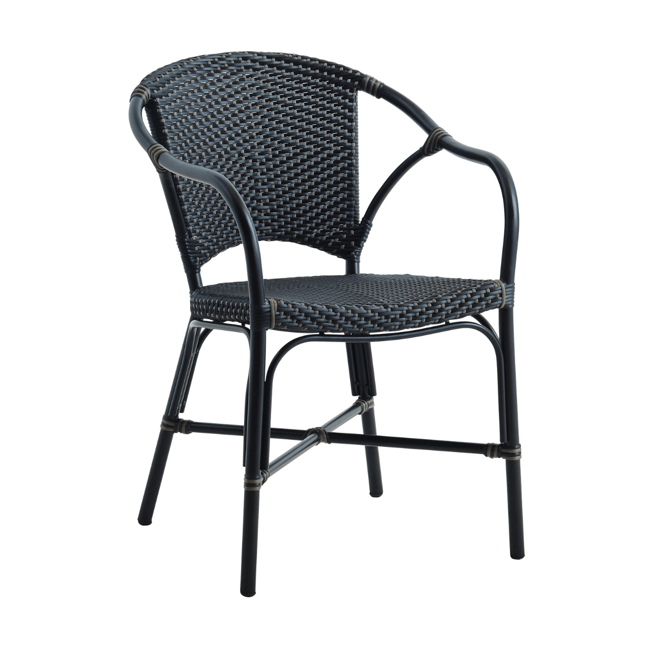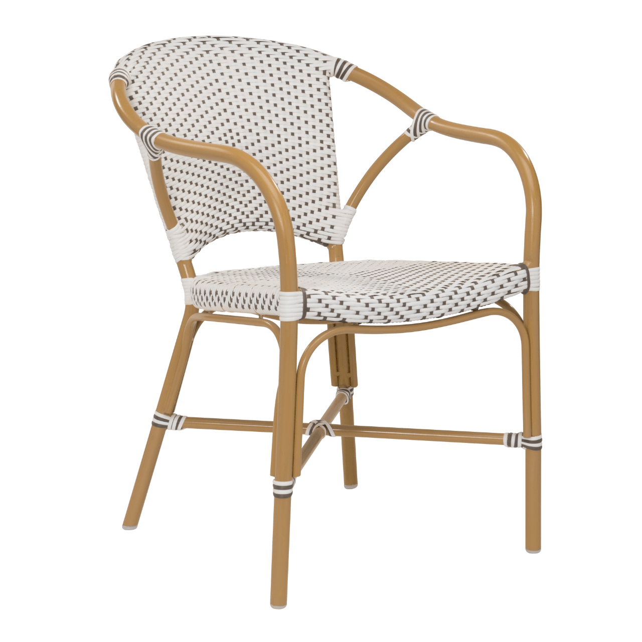 The Valerie Outdoor Armchair by BOXHILL showcases the breezy classic charm of bistro-style dining chairs in an all-weather AluRattan aluminum design. Inspired by Parisian sidewalk cafes, the armchair has a rounded back, reinforced curved arms, and a generous seat that slants slightly for comfortable seating. ArtFibre. . . Show More