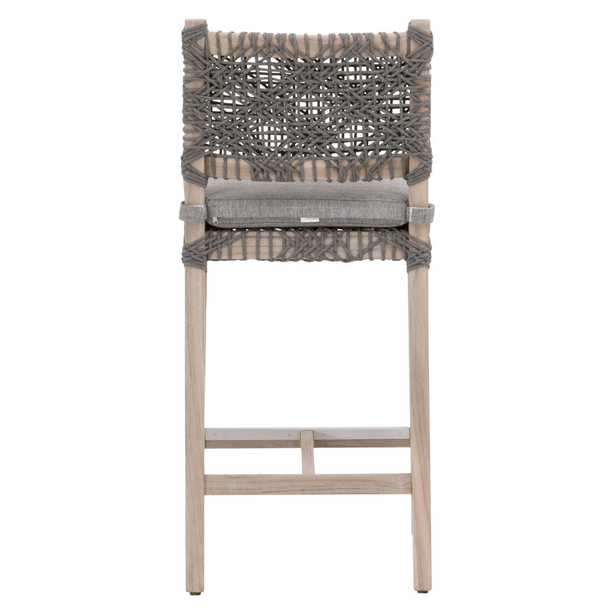 BOXHILL's Woven Costa Outdoor Counter Stool offers a blend of comfort and coastal style. Featuring a solid teak wood frame and a nautical-inspired interwoven rope design crafted from durable polyolefin, this chair will be a beautiful addition to any outdoor space.