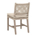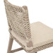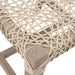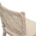 The backrest features an intricate hand-woven rope design made from flat polyolefin rope in an oat finish. This rope is engineered for outdoor environments and offers strong resistance to UV exposure, moisture, mildew, and general wear. The woven construction provides both visual depth and supportive comfort while maintaining airflow in warm climates.