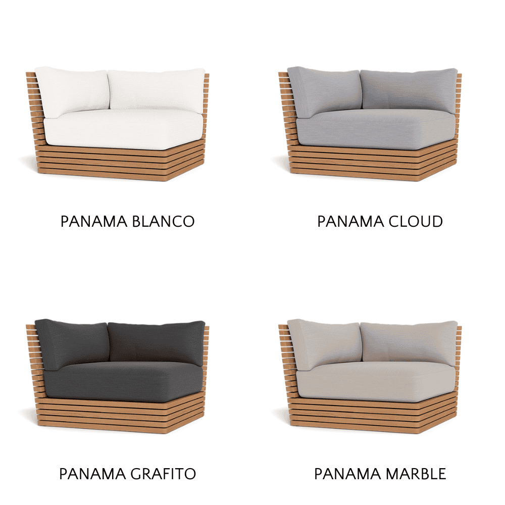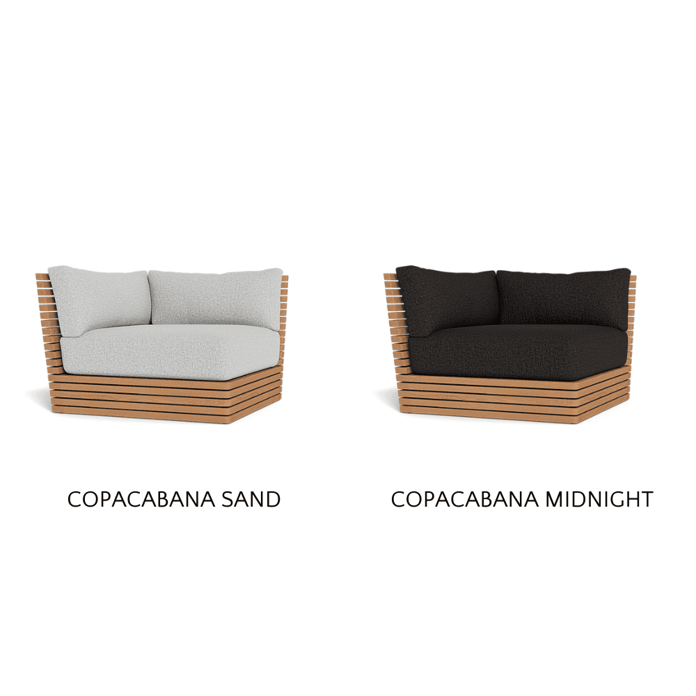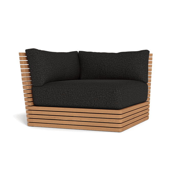 This design captivates with its harmonious blend of linear geometrics and subtle curves, making a striking statement in any outdoor environment. Versatile and commanding attention, the Tahiti Outdoor Corner pairs perfectly with the Armless Single and Side Table, or can be expanded to create a larger sectional ensemble with the 2 Seat Armless Sofa.