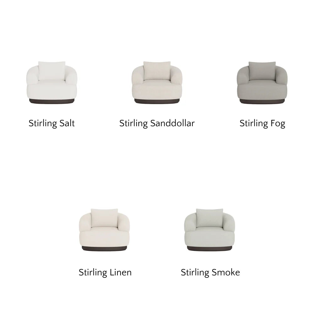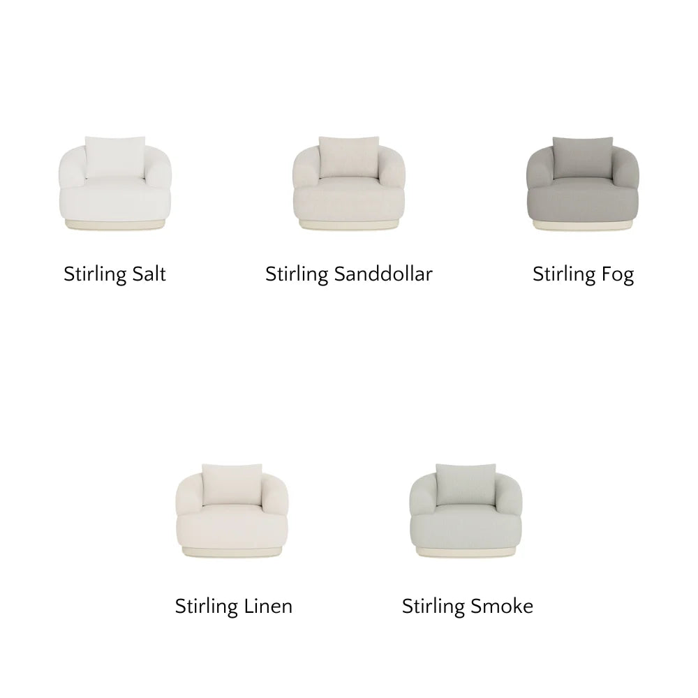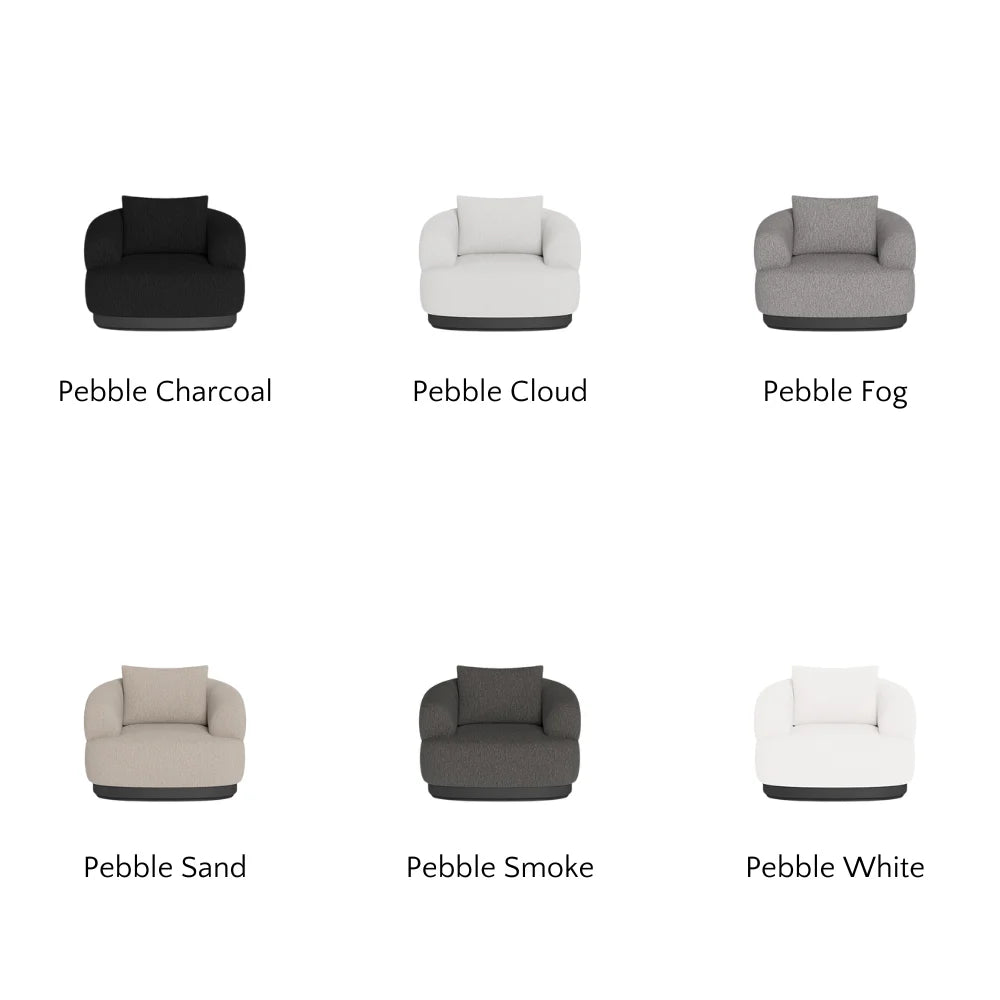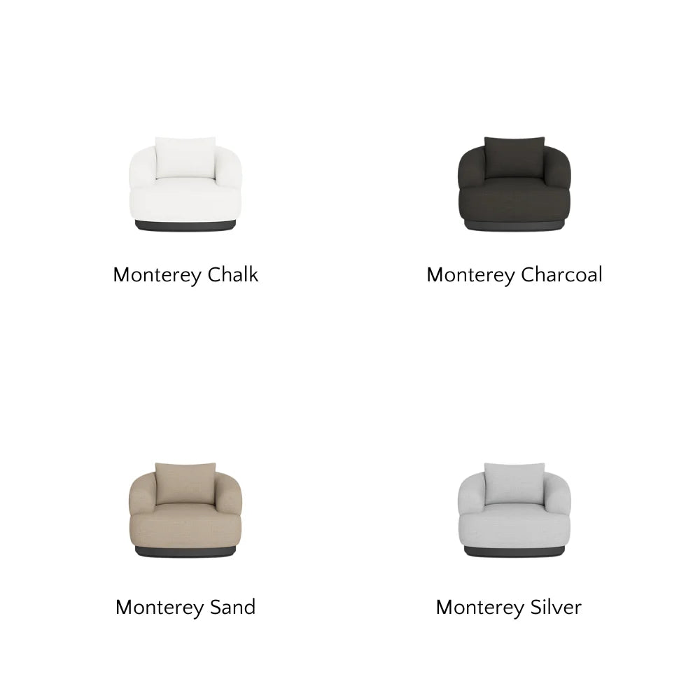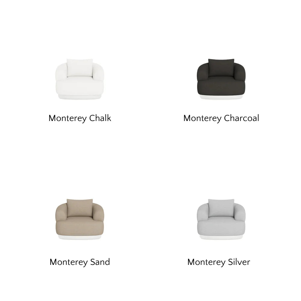 The upholstery is crafted from premium Italian outdoor fabrics—Copacabana, Panama, Siesta, and Riviera—each offering a soft hand, textured character, and timeless neutral palette. These materials are designed to withstand sun exposure, moisture, and everyday outdoor conditions, while still delivering the elevated feel of indoor textiles.