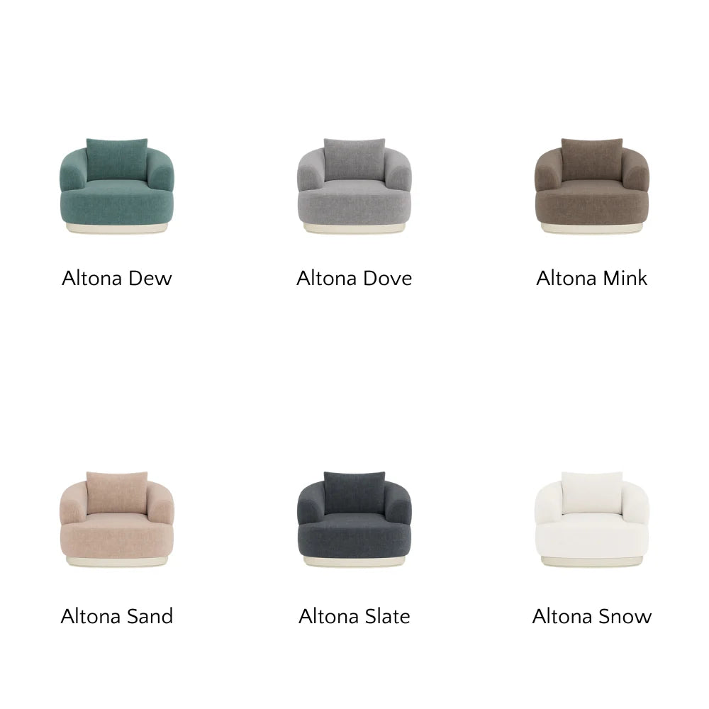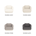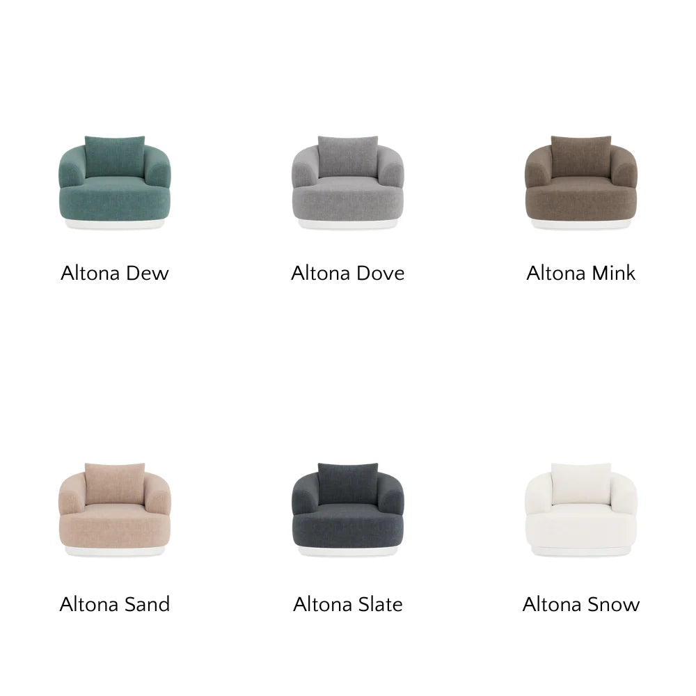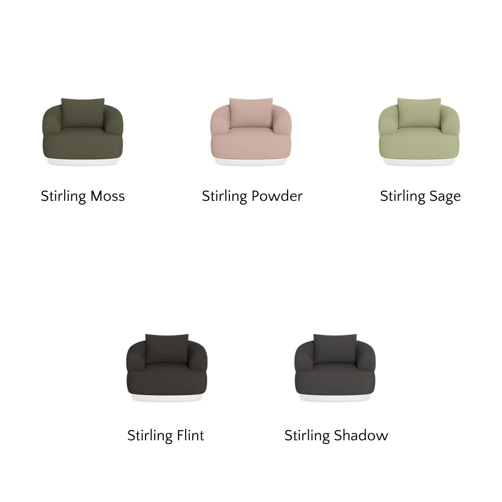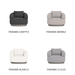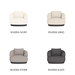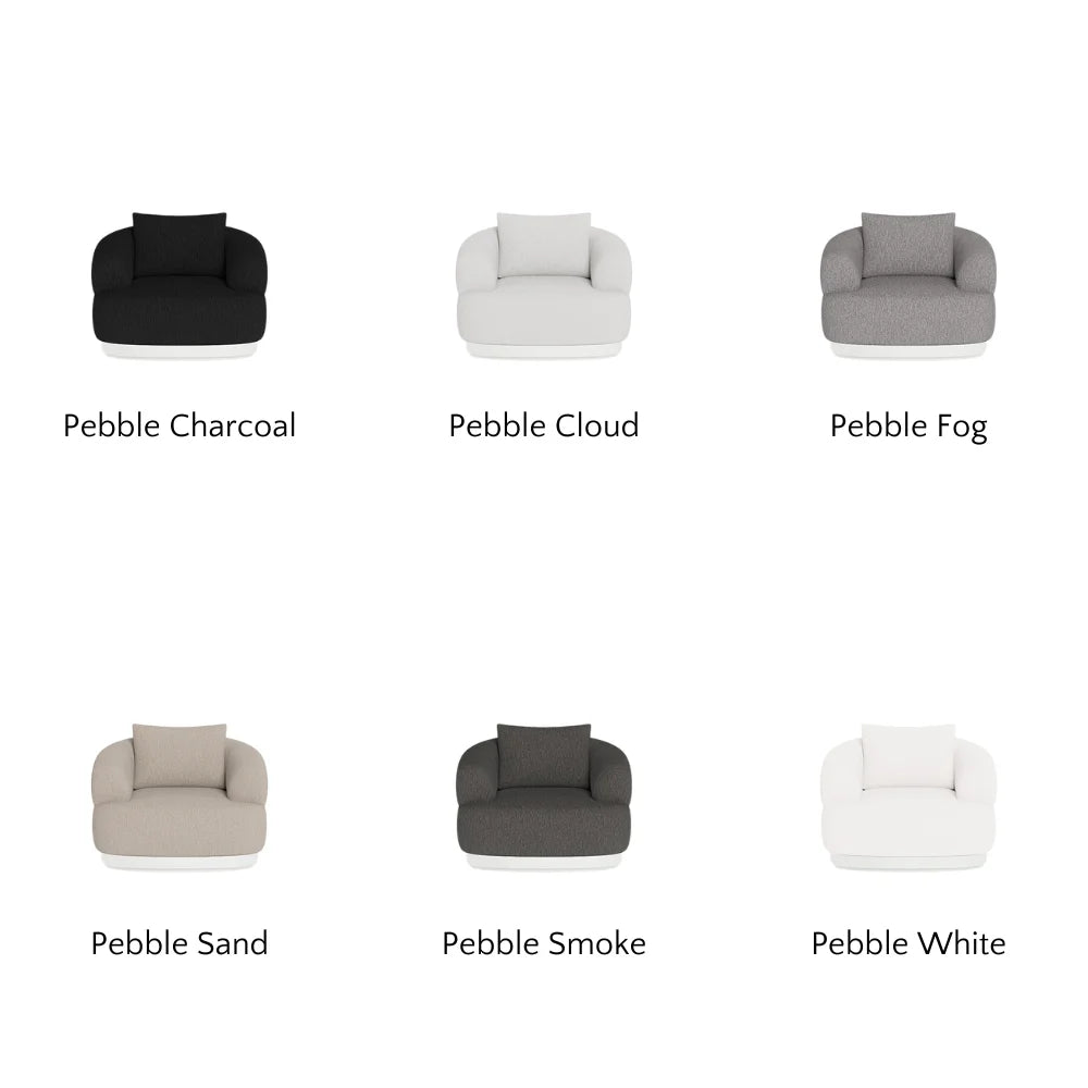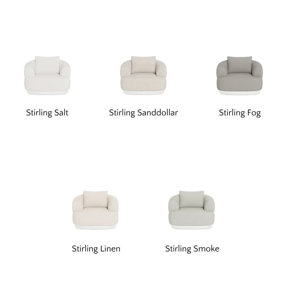 The upholstery is crafted from premium Italian outdoor fabrics—Copacabana, Panama, Siesta, and Riviera—each offering a soft hand, textured character, and timeless neutral palette. These materials are designed to withstand sun exposure, moisture, and everyday outdoor conditions, while still delivering the elevated feel of indoor textiles.