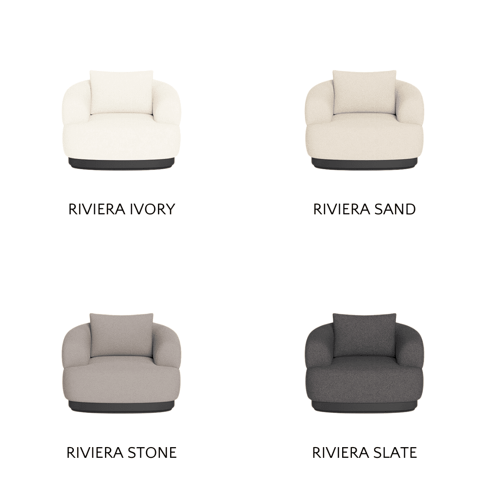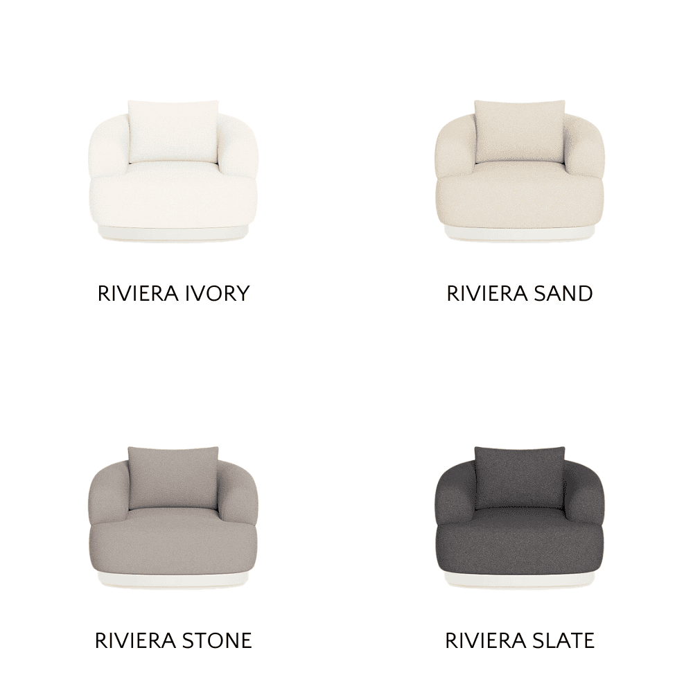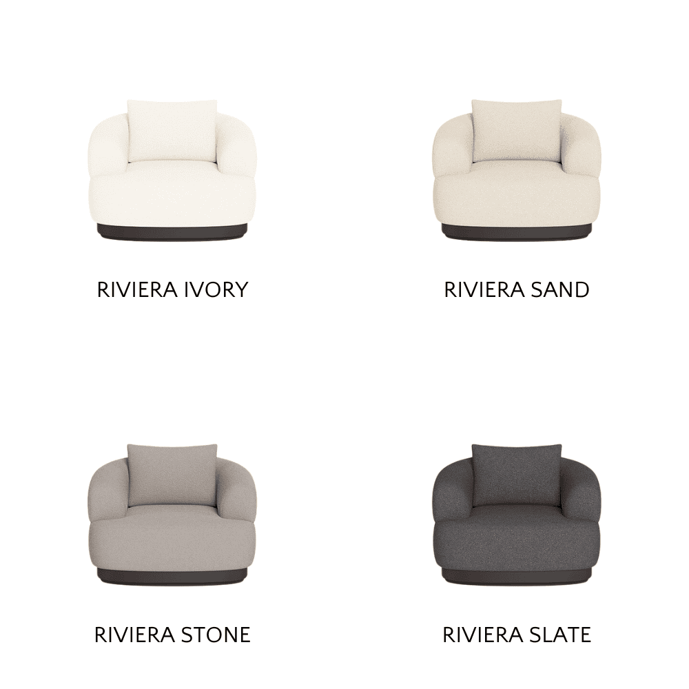 Sourced from Italy, Riviera is a fully outdoor performance fabric with a knubby texture similar to luxe boucle or terry cloth. Despite its soft, indoor-like feel, it’s made from 100% polypropylene, making it resistant to sun, moisture, sweat, mildew, and stains. Available in a range of neutral tones, Riviera adds refined, textured elegance to cushions and sofas. It comes from the Mario Sirtori line, an Italian company known for luxury, contract-quality fabrics since 1955.