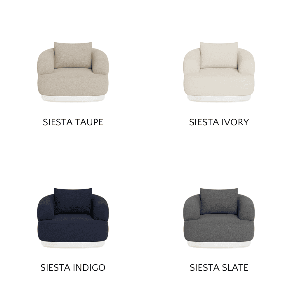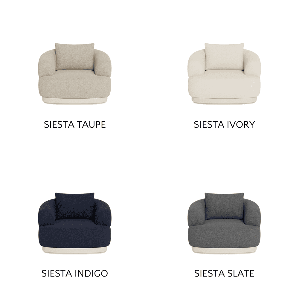 Milled in Italy, Siesta is our premium outdoor fabric that delivers true luxury. Though it looks and feels like indoor linen, its double-thickness basket-weave is made from 100% polypropylene, giving it sun, stain, and water resistance. It’s easy to clean, quick to dry, and offers a refined balance of classic and contemporary style.