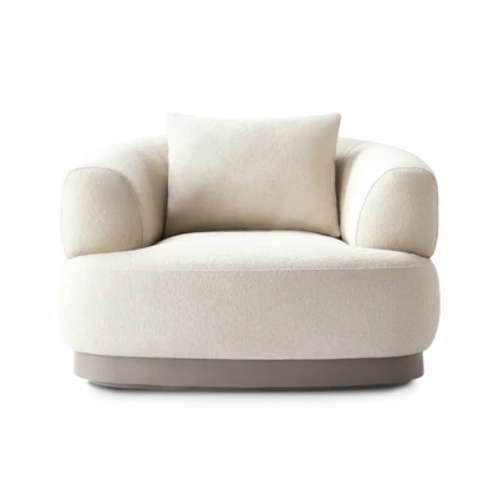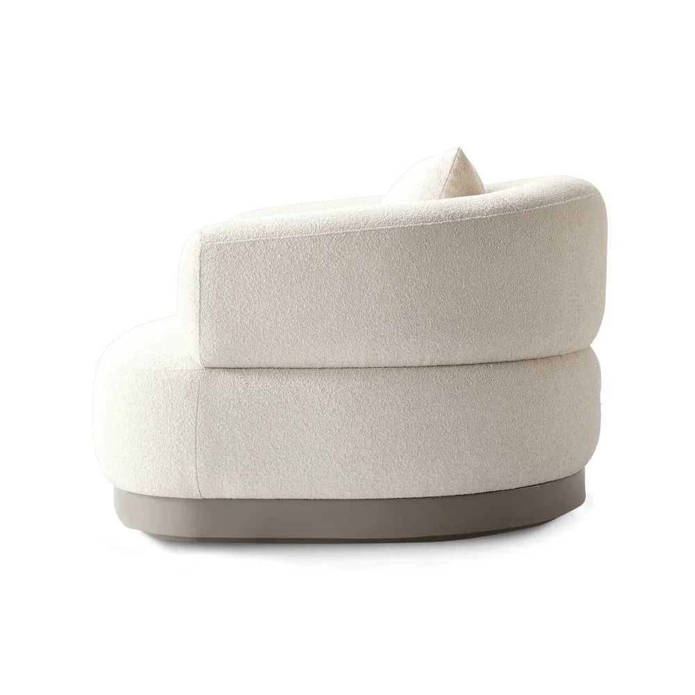 Amalfi Outdoor Lounge Chair's silhouette is one of its most striking features. The chair is shaped with rounded, embracing curves that create a cocoon-like seat, offering both visual softness and exceptional comfort. This outdoor lounge chair has gently arched arms and plush back cushion that wraps the body in an easy, relaxed posture, while the generously proportioned seat provides ample space to unwind. The smooth, continuous lines give the piece a sculptural quality that feels refined yet effortless.