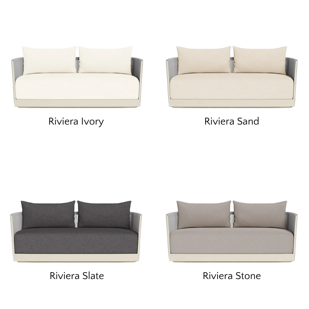 Sourced from Italy, Riviera is a fully outdoor performance fabric with a knubby texture similar to luxe boucle or terry cloth. Despite its soft, indoor-like feel, it’s made from 100% polypropylene, making it resistant to sun, moisture, sweat, mildew, and stains. Available in a range of neutral tones, Riviera adds refined, textured elegance to cushions and sofas. It comes from the Mario Sirtori line, an Italian company known for luxury, contract-quality fabrics since 1955.