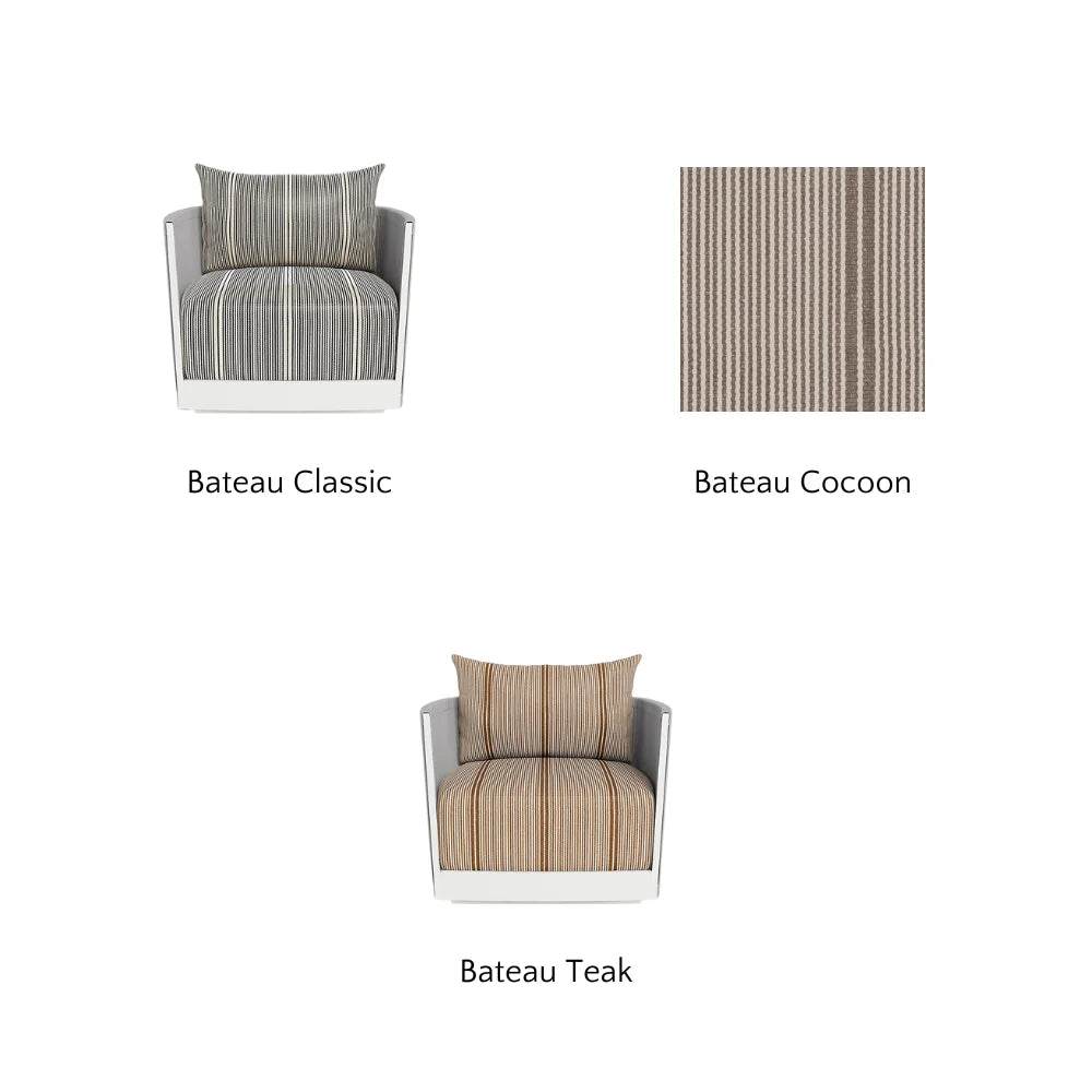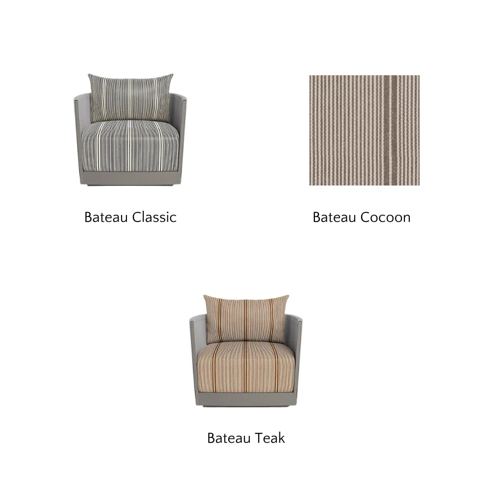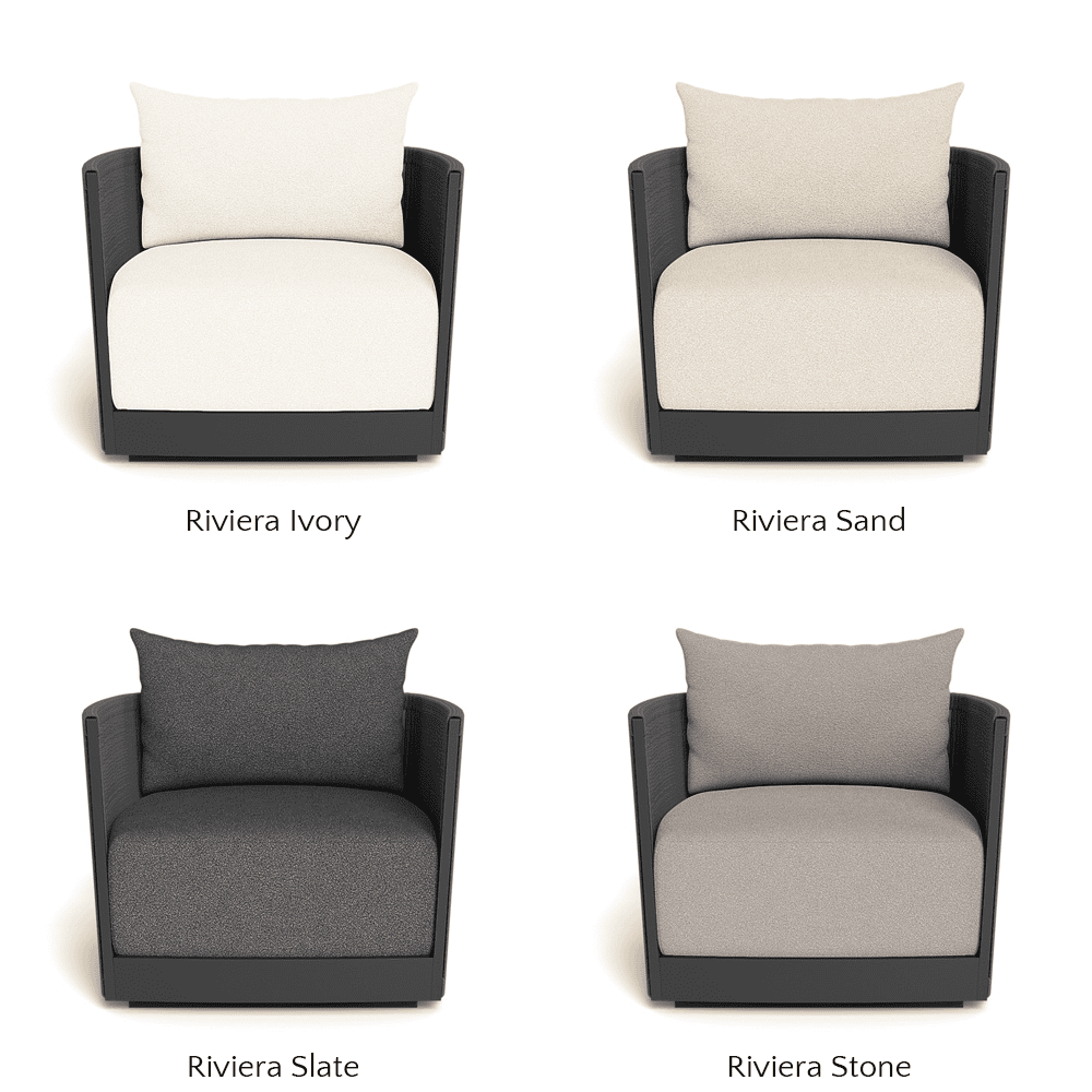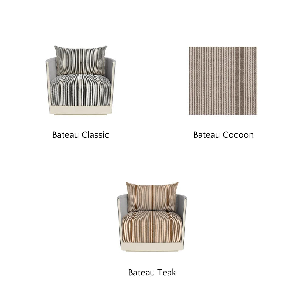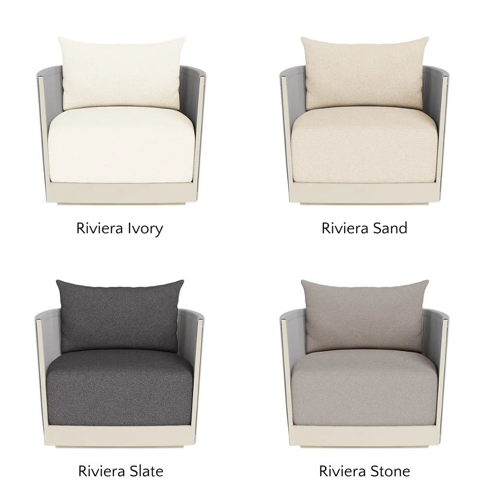 Sourced from Italy, Riviera is a fully outdoor performance fabric with a knubby texture similar to luxe boucle or terry cloth. Despite its soft, indoor-like feel, it’s made from 100% polypropylene, making it resistant to sun, moisture, sweat, mildew, and stains. Available in a range of neutral tones, Riviera adds refined, textured elegance to cushions and sofas. It comes from the Mario Sirtori line, an Italian company known for luxury, contract-quality fabrics since 1955.