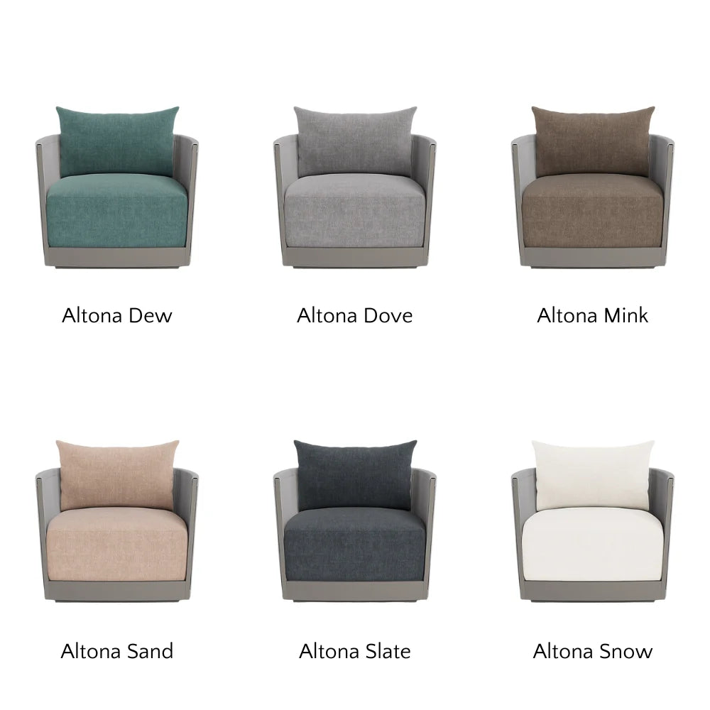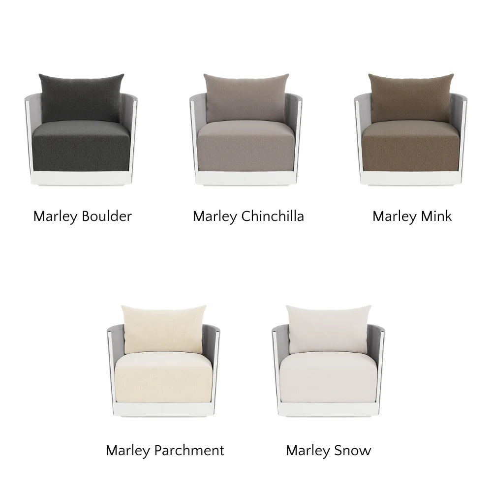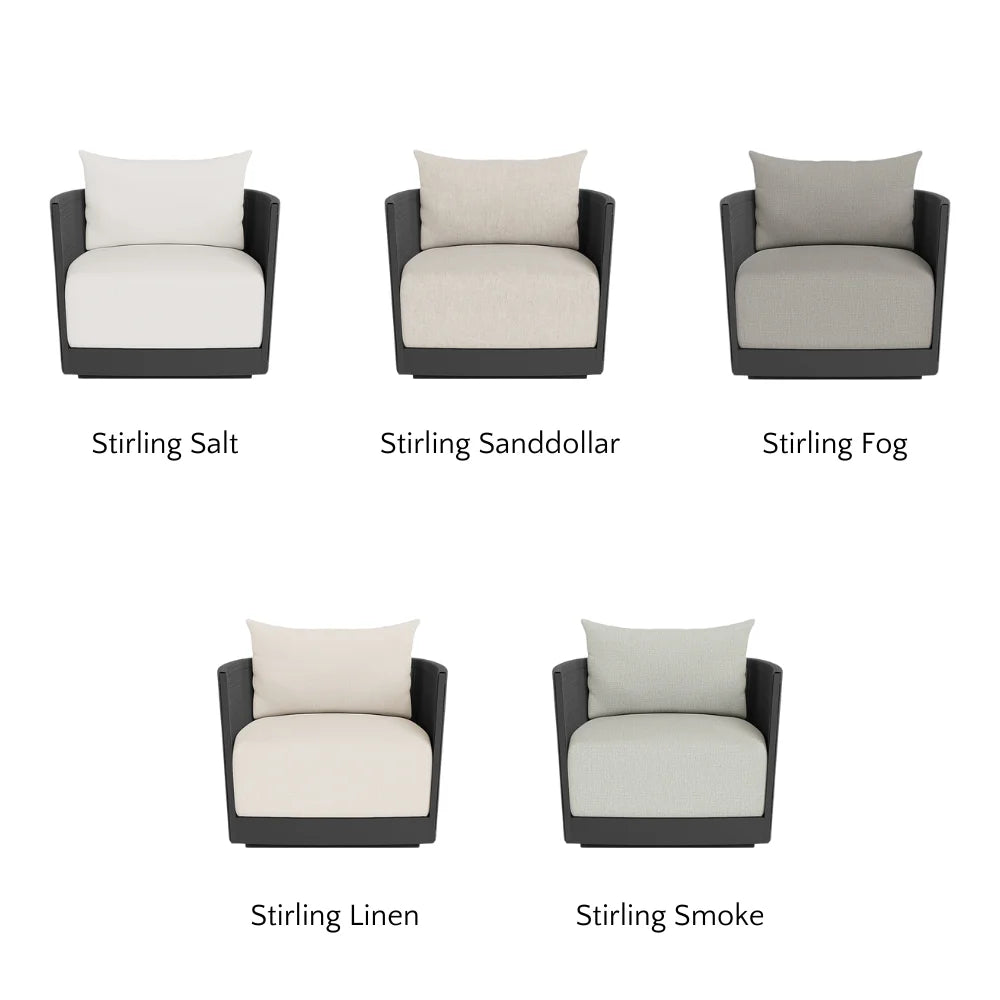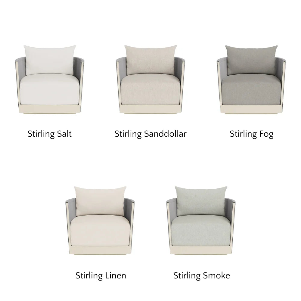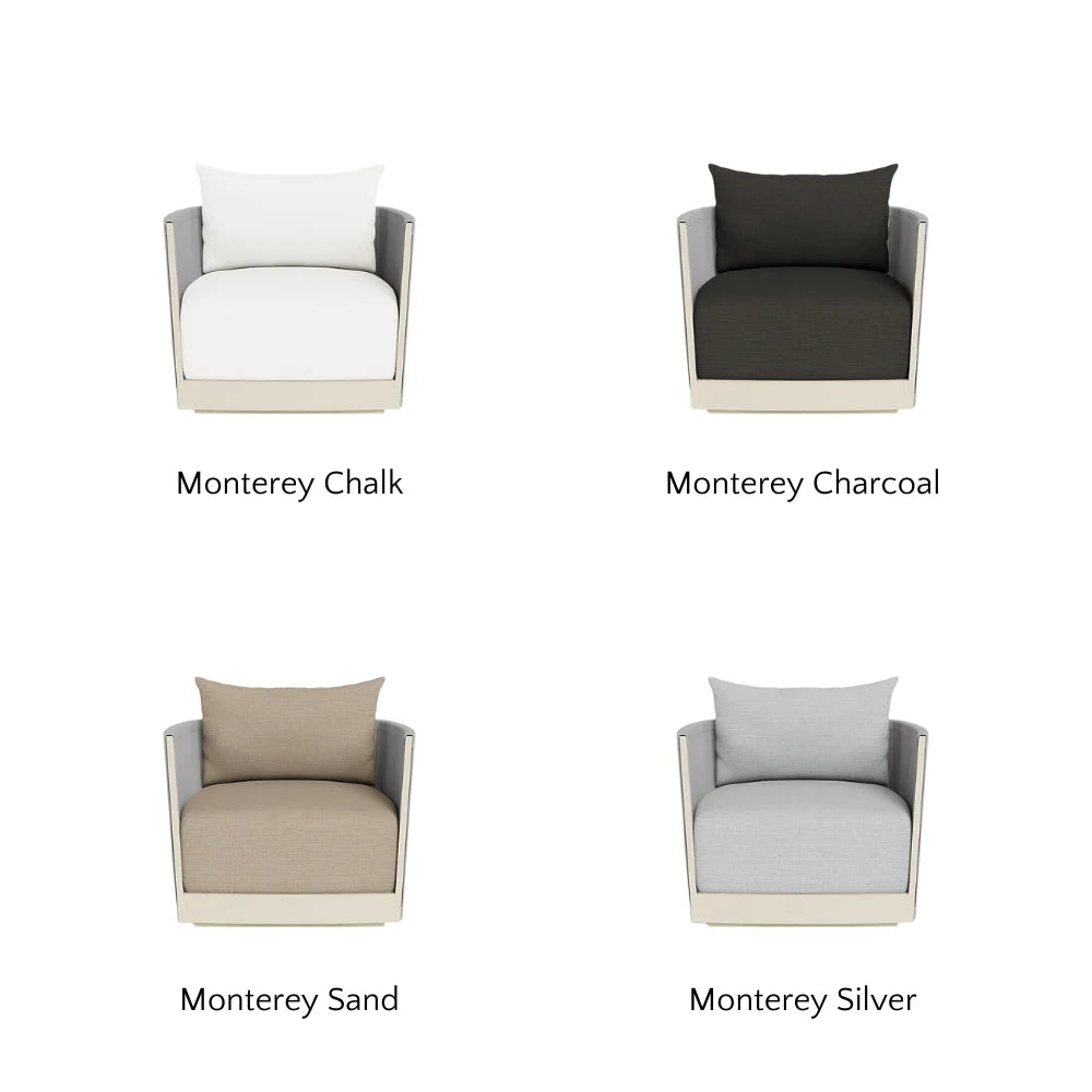 Sourced from Italy, Riviera is a fully outdoor performance fabric with a knubby texture similar to luxe boucle or terry cloth. Despite its soft, indoor-like feel, it’s made from 100% polypropylene, making it resistant to sun, moisture, sweat, mildew, and stains. Available in a range of neutral tones, Riviera adds refined, textured elegance to cushions and sofas. It comes from the Mario Sirtori line, an Italian company known for luxury, contract-quality fabrics since 1955.