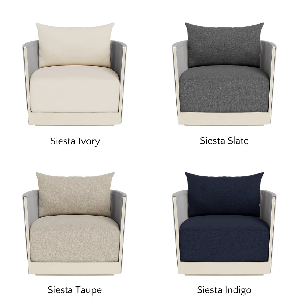 Milled in Italy, Siesta is our premium outdoor fabric that delivers true luxury. Though it looks and feels like indoor linen, its double-thickness basket-weave is made from 100% polypropylene, giving it sun, stain, and water resistance. It’s easy to clean, quick to dry, and offers a refined balance of classic and contemporary style.