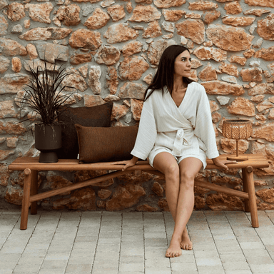 View full detailsPelopin Bench Give your space a boost with this new twist on an old classic -- SHOPBOXHILL's Pelopin Bench! Hand-woven by skilled artisans, this pi...