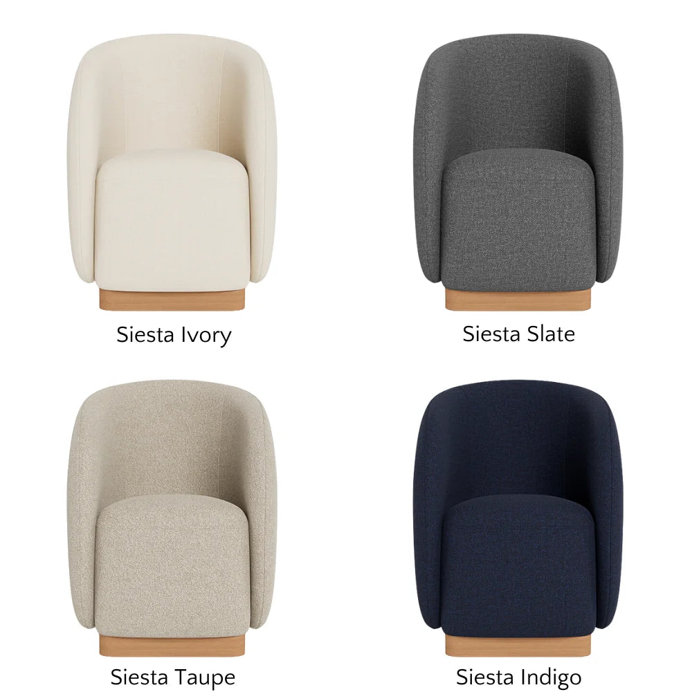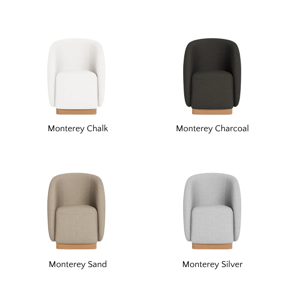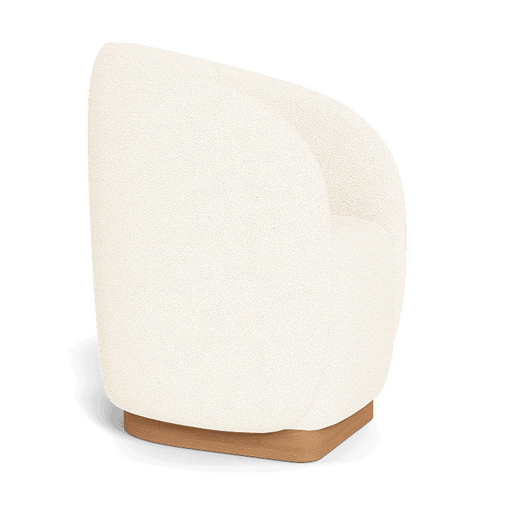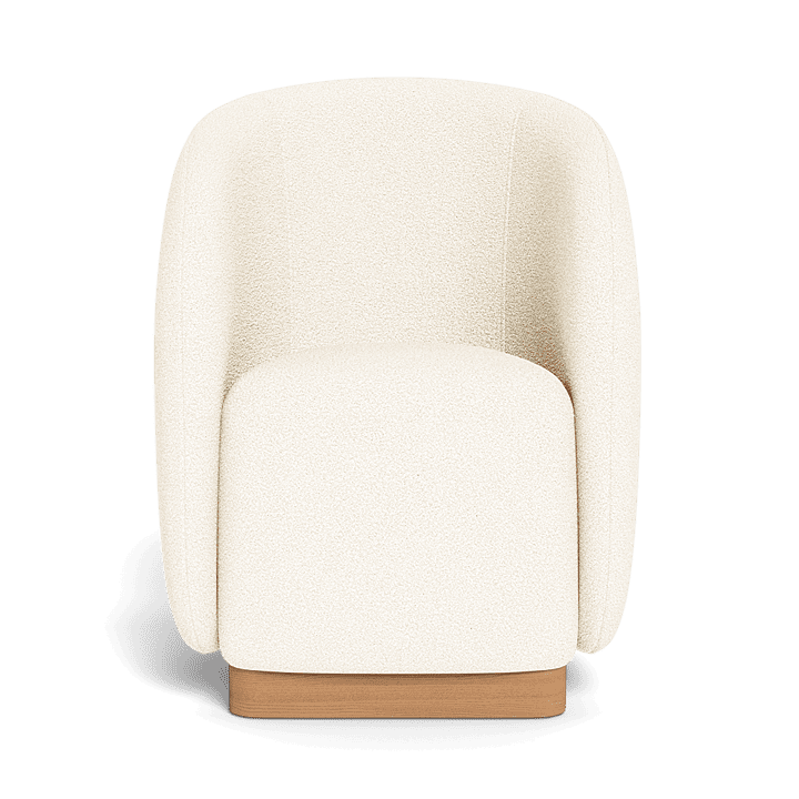A nod to the iconic Italian elegance of Lake Como, our Como collection refines the traditions of fine Italian tailoring for a natural setting with organically–inspired signature curves and luxe outdoor upholstery. The barrel–backed Como Outdoor Dining Chair channels the high design and comfort of an indoor piece — expertly upholstered in performance textiles in Riviera Ivory over quick–dry foam on a solid teak base in Natural. Engineered for a supported sink–in feel, this outdoor lounge chair is an elevated take on comfort that swivels for ease of movement. Also available in a static lounge chair design.