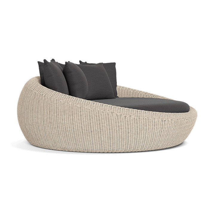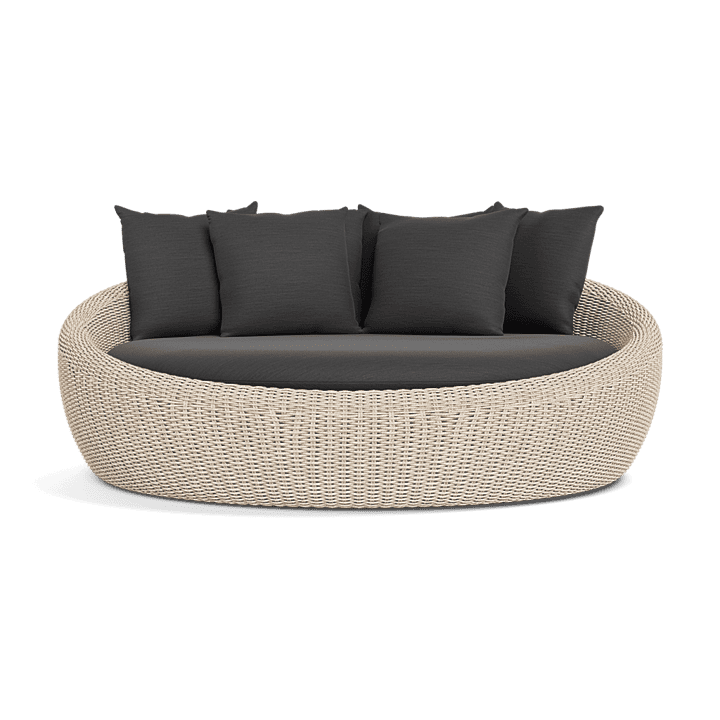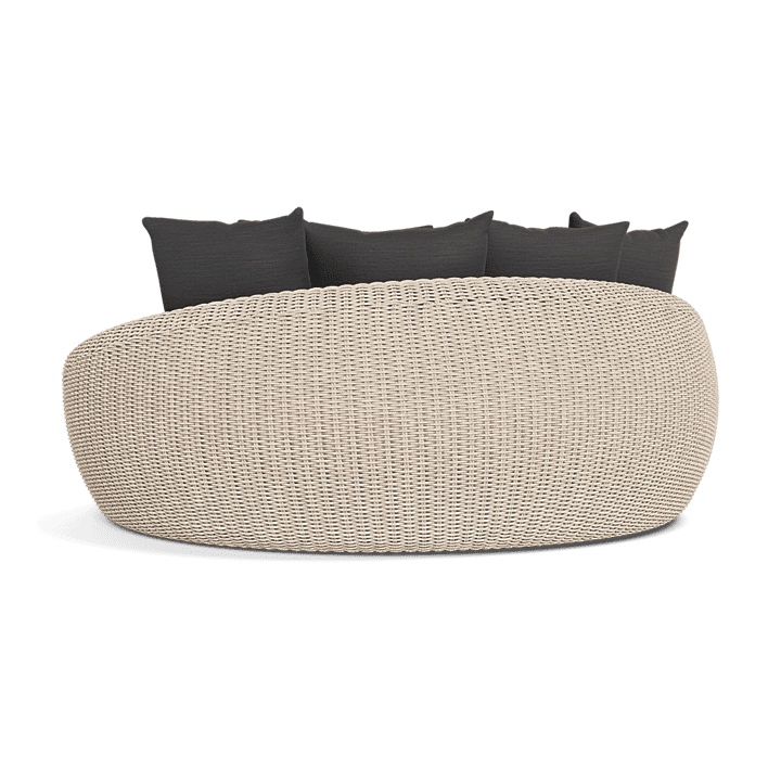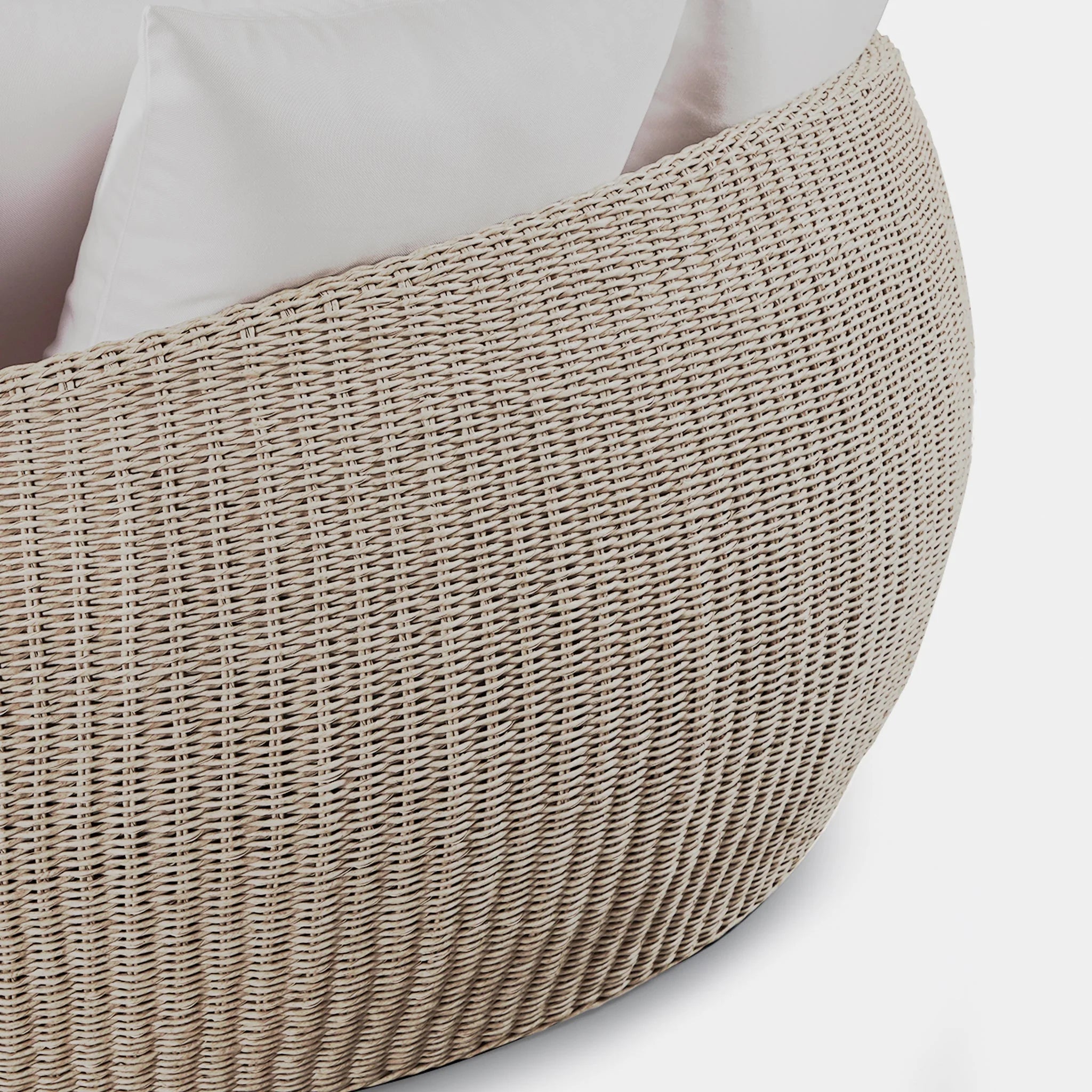 The Cordoba Outdoor Daybed seamlessly blends style and functionality, catering to small outdoor spaces. Its rounded shape and sandy hues pay homage to Spain's Cordoba region, while the all-weather twisted resin frame adds both texture and durability. Sink into the comfort of a round cushion and knife-edge back cushion, all within a compact design tailored perfectly for balconies and apartments. Elevate your outdoor space with this unique and versatile chair.