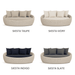 - 1 large seat cushion and loose scatter knife–edge back cushions included. Resistant to outdoor mildew, stains and fading.