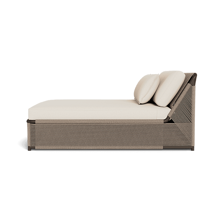 Indulge in organic luxury with the Formentera Daybed, meticulously crafted by Kara Mann. Featuring exposed aluminum tube, twisted all-weather rope, and deep green marble, this daybed exudes a coastal-inspired aesthetic. Its ample size and plush outdoor cushions ensure luxurious lounging experiences, while the bronze powder-coated frame and. . . Show More