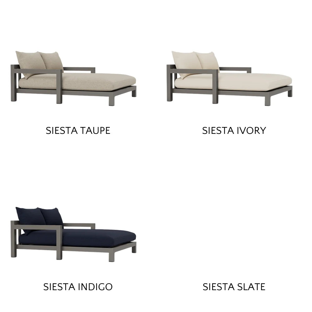Our Pacific Aluminum collection features clean lines with a California rustic essence. The Pacific Aluminum Daybed is streamlined poolside comfort — relax on a plush domed bench cushion with knife-edge back cushions available in a range of neutral tones and supported by a Batyline sling suspension in Silver or White for added comfort. Handcrafted from powder coated extruded aluminum in White, Taupe or Asteroid, this modern daybed effortlessly fits in any outdoor space and generously accommodates multiple people for soaking up the sun.