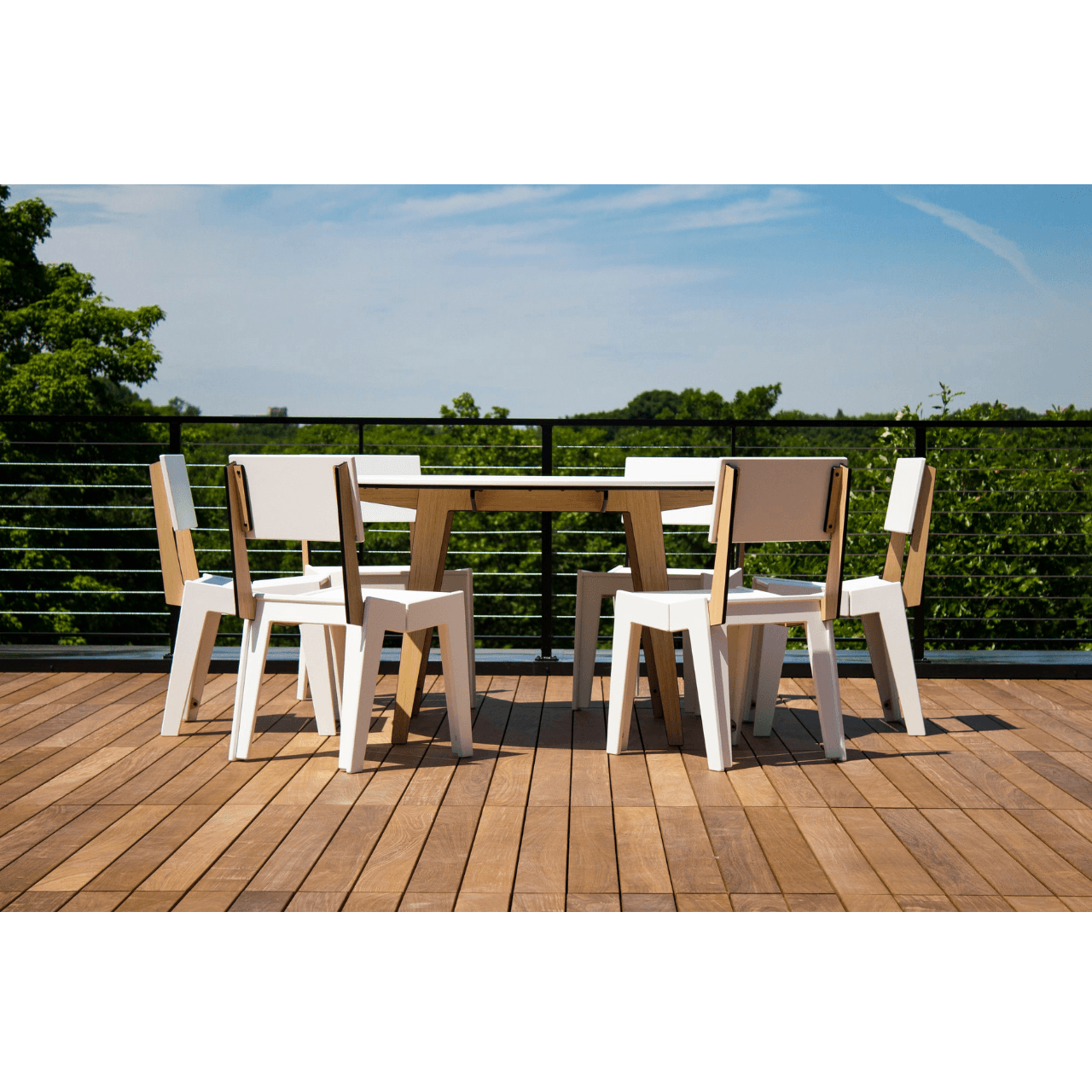 BOXHILL's Lane Outdoor Dining Chair brings modern style to the outdoors! The Lane chair has a curve seat allowing your back to rest easy, making these chairs comfortable and supportive.These chairs are available in four frame colors and three different wood grain colors. This chair is low maintenance and will never have to berefinished or restained. The chair is UV resistant, waterproof, and resistant to all weather elements. Durable and strong, the Lane Outdoor Dining Chairs will not warp, rust, splinter, and/or crack.