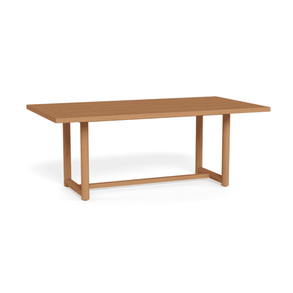 No assembly is required beyond placing the table in your desired location. For optimal longevity, we recommend using our custom outdoor covers to protect against UV exposure, moisture, and natural aging. Teak can be cleaned periodically with mild soap and water; for deeper maintenance, use teak oil or sealant as needed to maintain color and structural integrity.