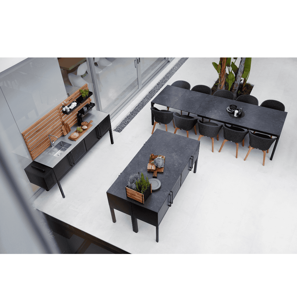 Introducing the Drop Outdoor Dining Table with a 78.8" Table Extension, where an innovative blend of a sleek table top and softened aluminum frame creates a distinct style in our outdoor table collection. Crafted with custom-designed profiles for durability and elegance, the frame ensures a sturdy construction. The ceramic table top, inspired by Nordic living, offers a resilient surface with a raw aesthetic. Available in various sizes, including options with extension plates, this dining table caters to all needs, providing ample space for cozy outdoor dinners, whether large or small. Explore our range of stackable outdoor dining chairs and sets, along with other stackable outdoor furniture options, to complement your outdoor dining experience perfectly.