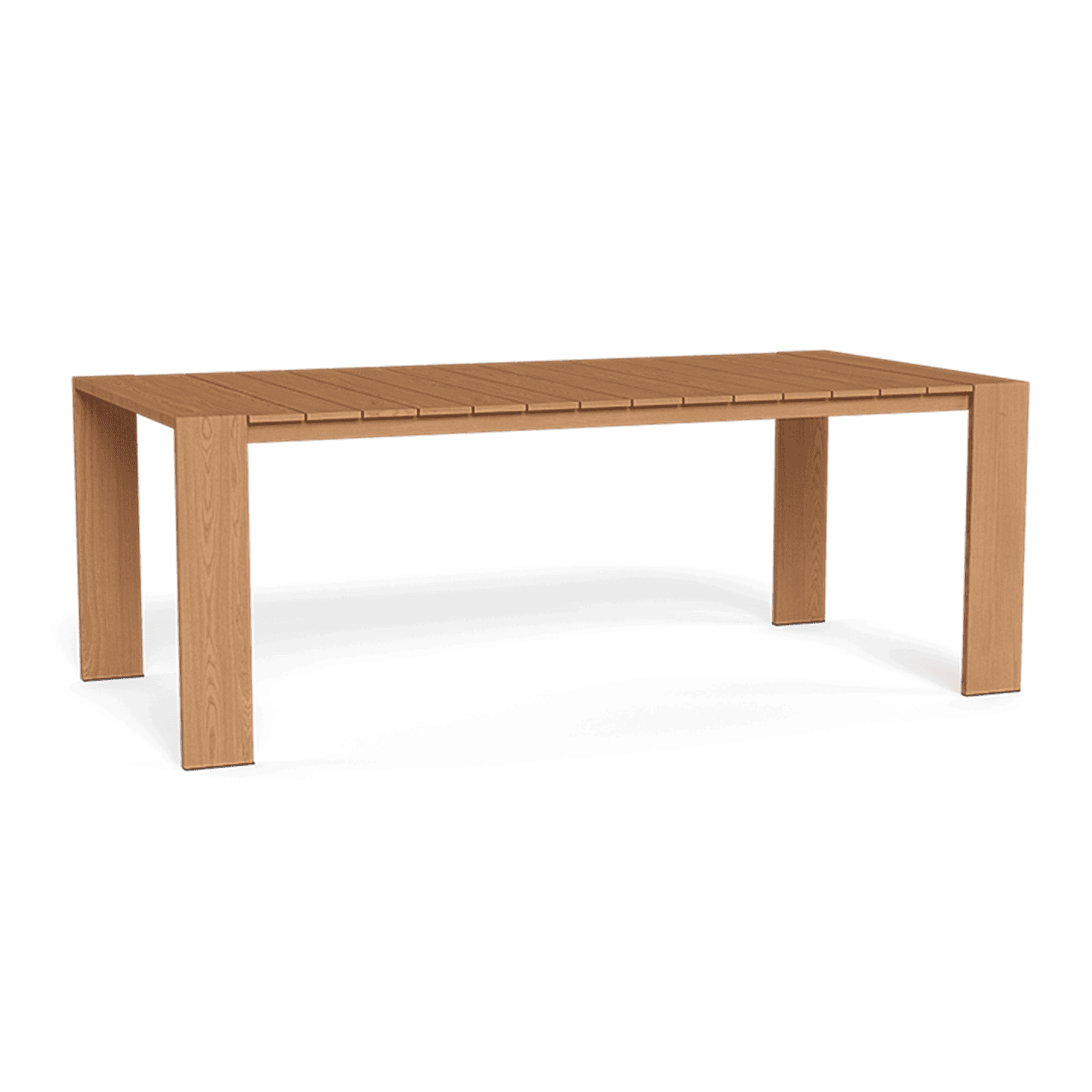 Introducing our Hayman Outdoor collection, where modern sophistication meets simplicity through its clean angles and contemporary styling. The Hayman Outdoor Teak Dining Table 81" stands out with its wide legs, offering the perfect outdoor dining solution for gatherings of up to eight guests. Enjoy its standard large rectangular surface, meticulously crafted from slatted solid natural teak, which presents a streamlined yet functional design. This modern dining table seamlessly blends indoor aesthetics with outdoor durability, making it versatile enough to complement various outdoor spaces. Pair it with our Hayman Outdoor dining chairs to create the ultimate outdoor dining set.