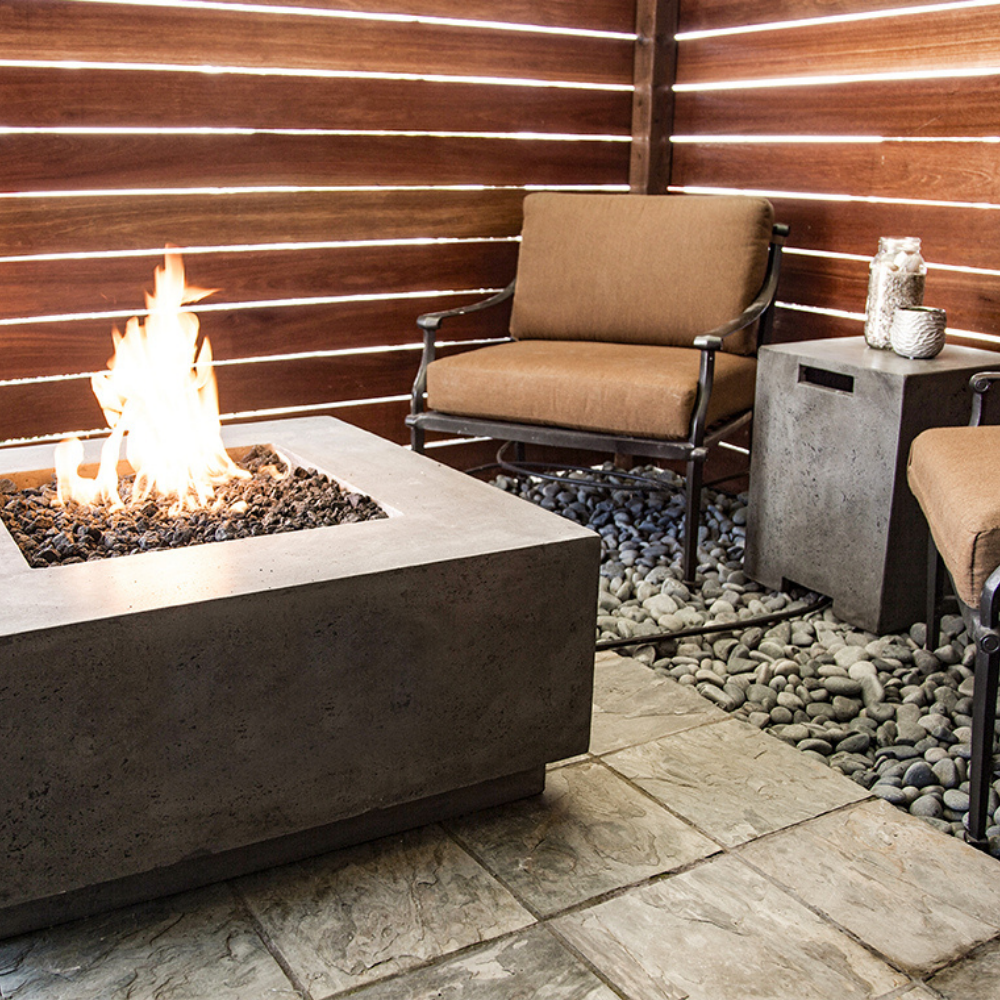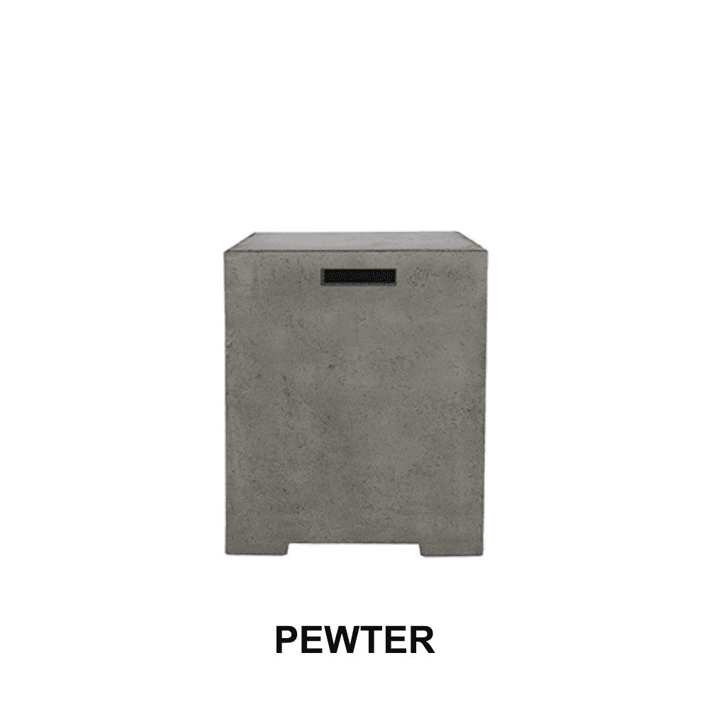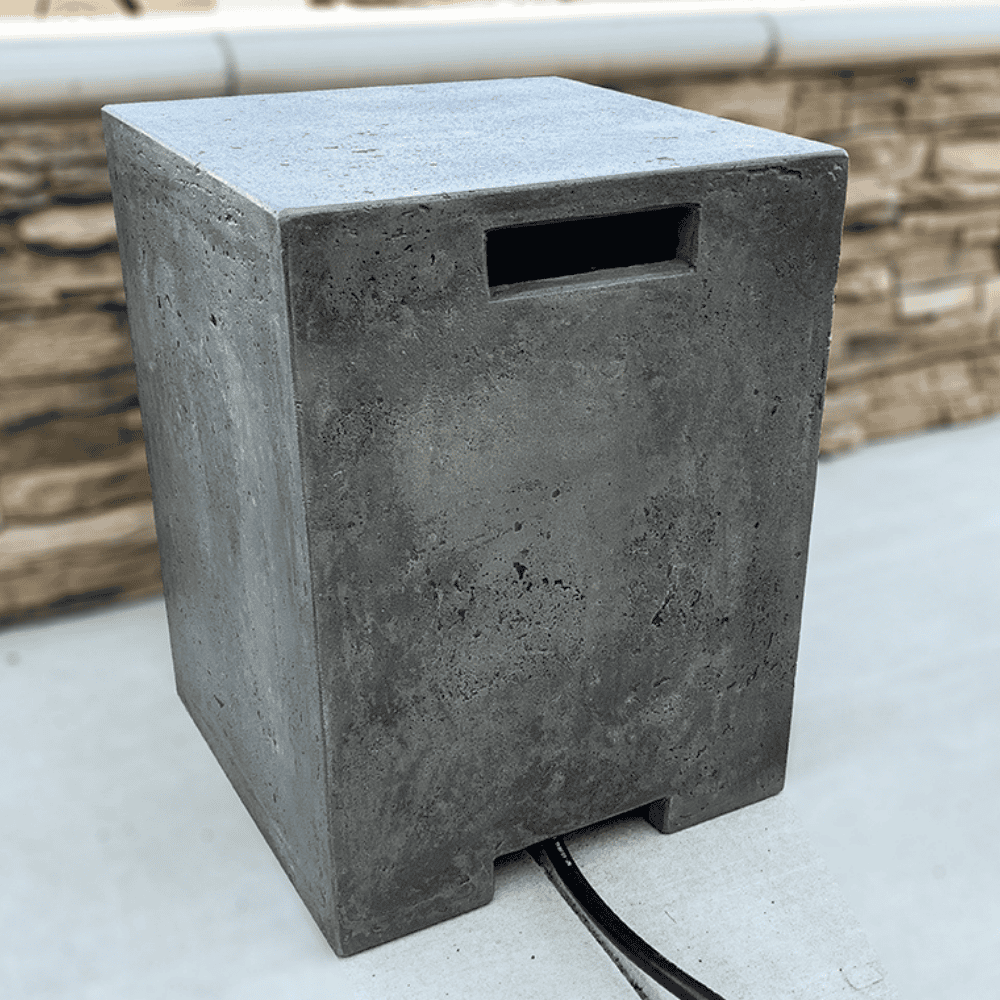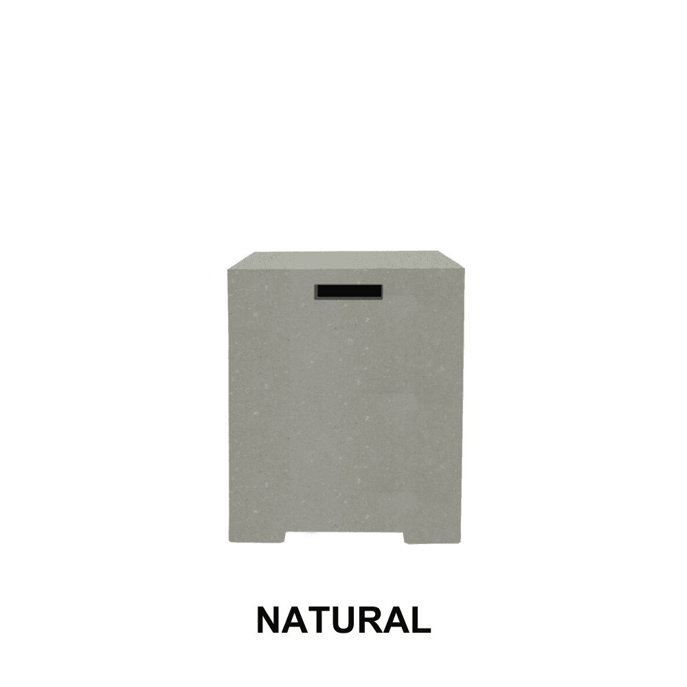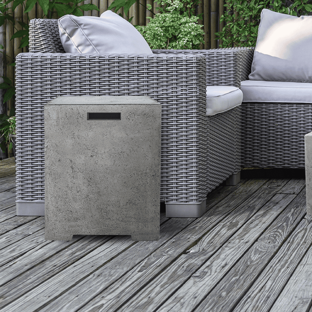 BOXHILL's Sausalito Outdoor Concrete Propane Enclosure provides both coverage and functions nicely as an end table. Each cover has been hand-crafted using our custom patina finishing process, guaranteeing a one-of-a-kind creation with subtle variation. The 16" by 16" size table provides a beautiful and functional side piece for any backyard, patio or lounging area. Pairs well with our square / rectangle fire tables.
