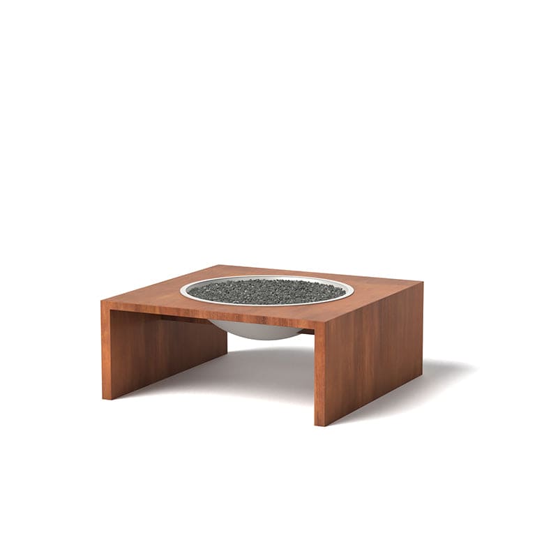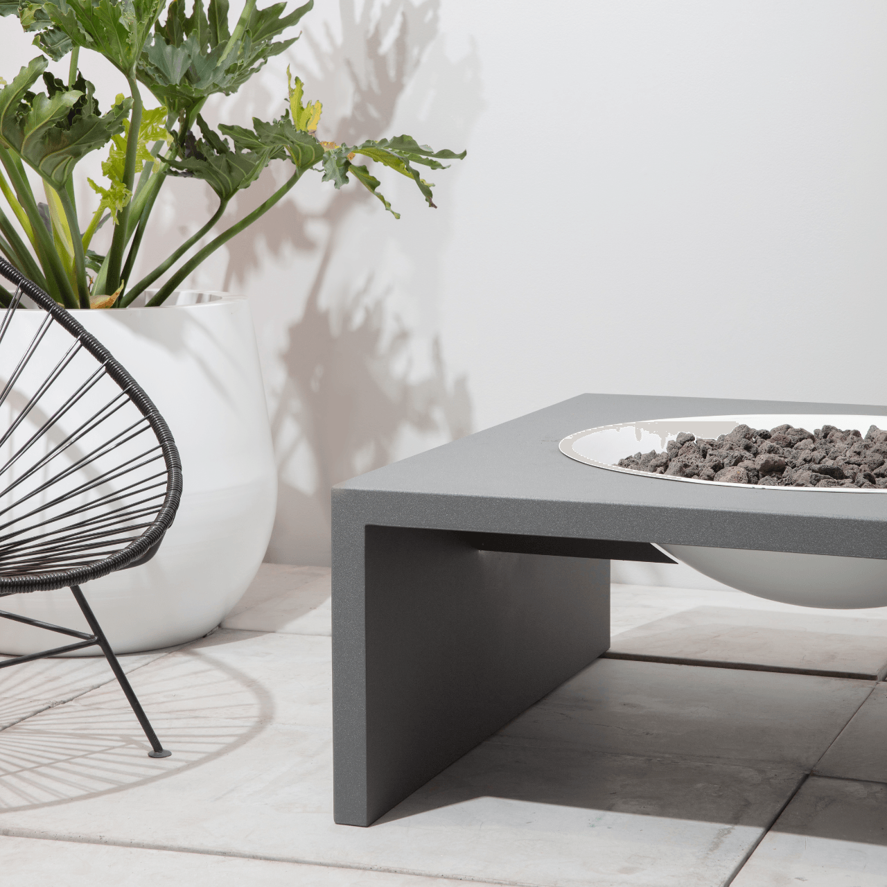 The Basin Fire Pit Bowl is a versatile outdoor element with a low profile, modern design, and many color options. This fire pit table is wood-burning but may be fitted for natural gas, propane (LP), or Eco Smart Bio-ethanol. The pre-installed match-lit gas kit has an adjustable key valve, manifold, flex hose, and fittings.
