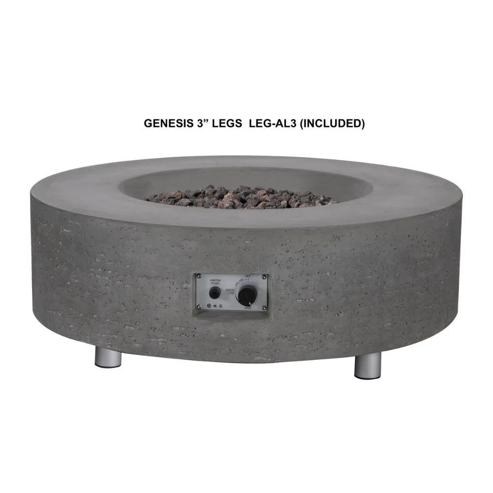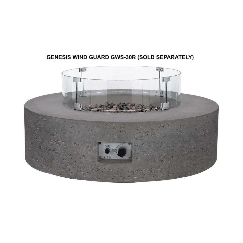 Genesis Outdoor Fire Pit Table is a fiber-reinforced material. Although not considered a defect, non-structural hairline cracks are possible as a result of shrinkage and the natural curing process. By ordering products from this collection, you accept the natural characteristics unique to each item and agree that no claims will be approved regarding these natural variations. Although suitable for outdoor use this item should not be left outside in extreme weather such as freezing temperatures, snow and ice.