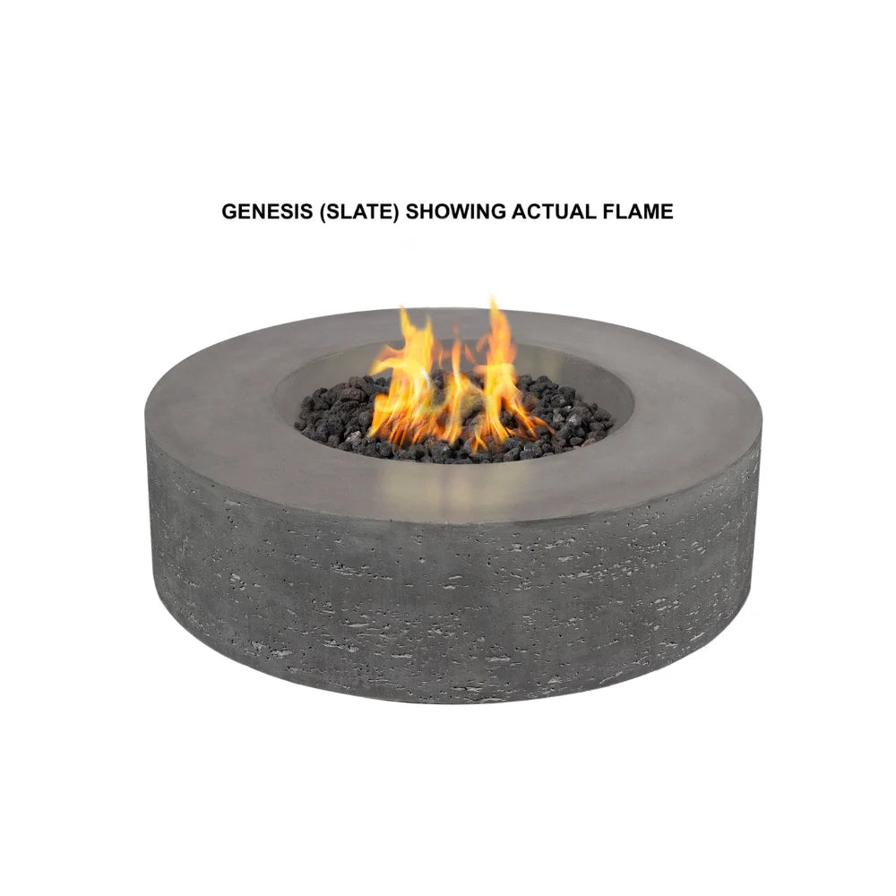 The Genesis Outdoor Fire Pit Table is hand cast from high-performance Glass Fiber Reinforced Concrete (GFRC) with two coats of clear sealer. It has a slate texture on. . . Show More