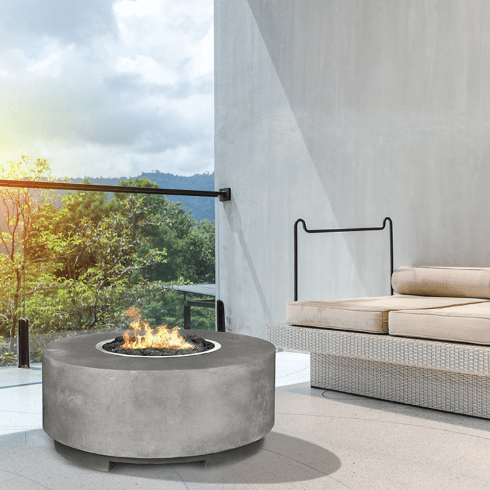BOXHILL's Rotondo Outdoor Concrete Round Fire Table provides an outdoor retreat of warmth and ambiance. Each bowl has been hand-crafted using our custom patina finishing process, guaranteeing a one-of-a-kind creation with subtle variation. The 48" diameter table provides a beautiful and functional centerpiece for any backyard, patio or lounging area. The ambient heat provides plenty of warmth for multiple people. The 65,000 BTU unit operates with both a standard propane tank or Natural Gas hookup.