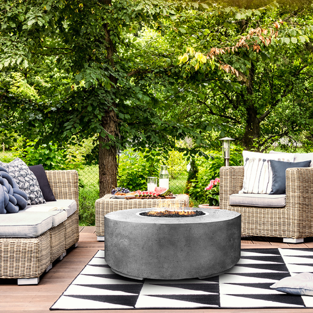 BOXHILL's Rotondo Outdoor Concrete Round Fire Table provides an outdoor retreat of warmth and ambiance. Each bowl has been hand-crafted using our custom patina finishing process, guaranteeing a one-of-a-kind creation with subtle variation. The 48" diameter table provides a beautiful and functional centerpiece for any backyard, patio or lounging area.. . . Show More