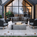 To complete the enchanting experience, Chaos Outdoor Fire Pit Table comes with premium black rolled lava rock fill, ranging in size from 1 to 3 inches. These natural volcanic stones add depth and texture to the composition, enhancing the overall aesthetic appeal and providing a visually stunning contrast against the flames.