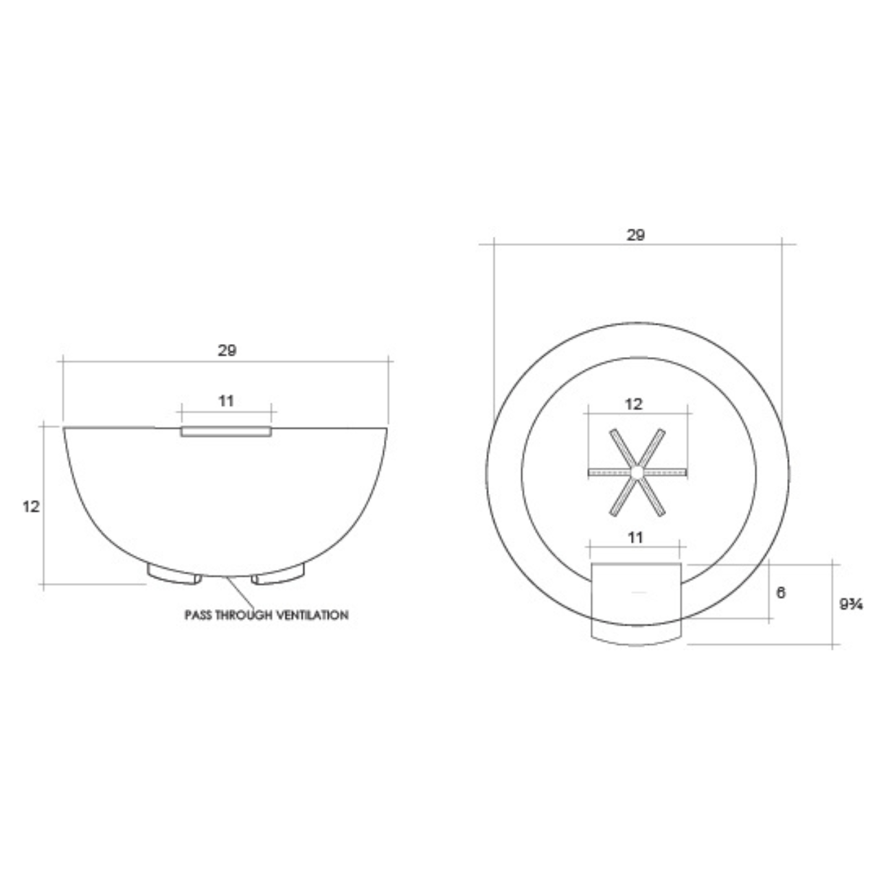 The Moderno DUEL round fire pit bowl shape and water feature bowl stands as the most compact and circular petite model in the duel fire and water feature series. Crafted by hand, each round low bowl undergoes our exclusive patina finishing process, ensuring a truly unique piece with subtle variation. With its round 29″ diameter, the circular bowl serves as a captivating and practical centerpiece any pool or spa or small pond or fountain feature. Operating at 65,000 BTUs, the unit can run on either Propane Gas fire pit or Natural Gas fire pit, granting you flexibility and ease of use.